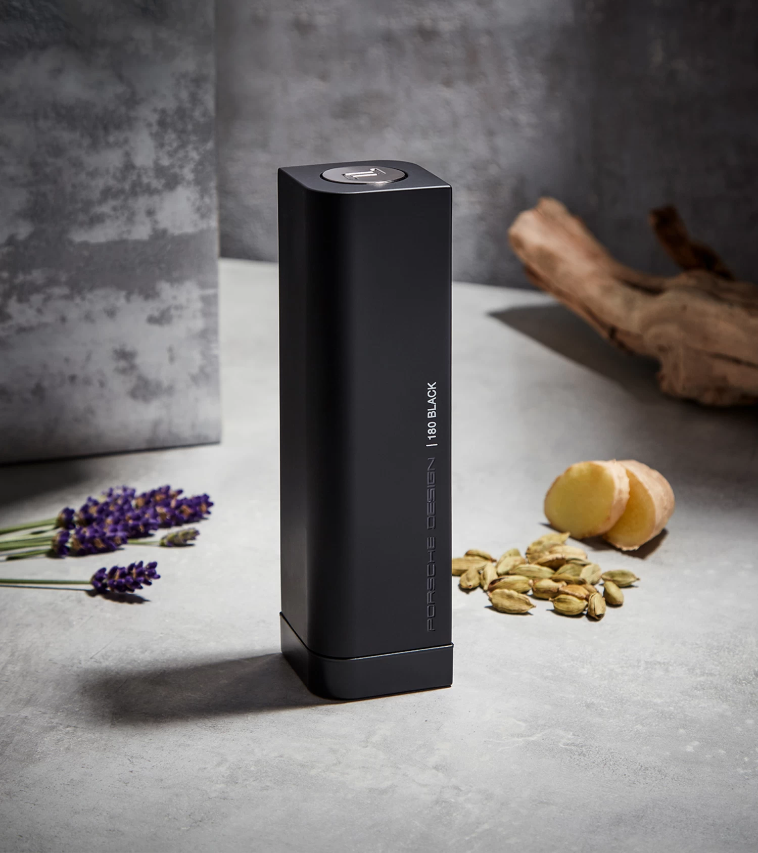 Porsche Design 180 Black is a sophisticated fougere for the twenty first century. A perfect balance of timeless classicism and exciting modernity. The fragrance opens with a top note of youthful exuberance and spontaneity (Pink Pepper, Grapefruit and Cardamom). This sense of vitality runs through the core of the fragrance enlivening its elegant masculinity. Â Aromatic and spicy facets (Ginger, Clary Sage and Lavender) energize its beautiful classical foundations (Vetiver, Cedarwood) for a spirited, memorable fragrance. A technical twist, pure elegance and strong masculinity result in PORSCHE DESIGN 180 Black. With a 180-degree turn, this distinctive bottle can be opened and closed refined.