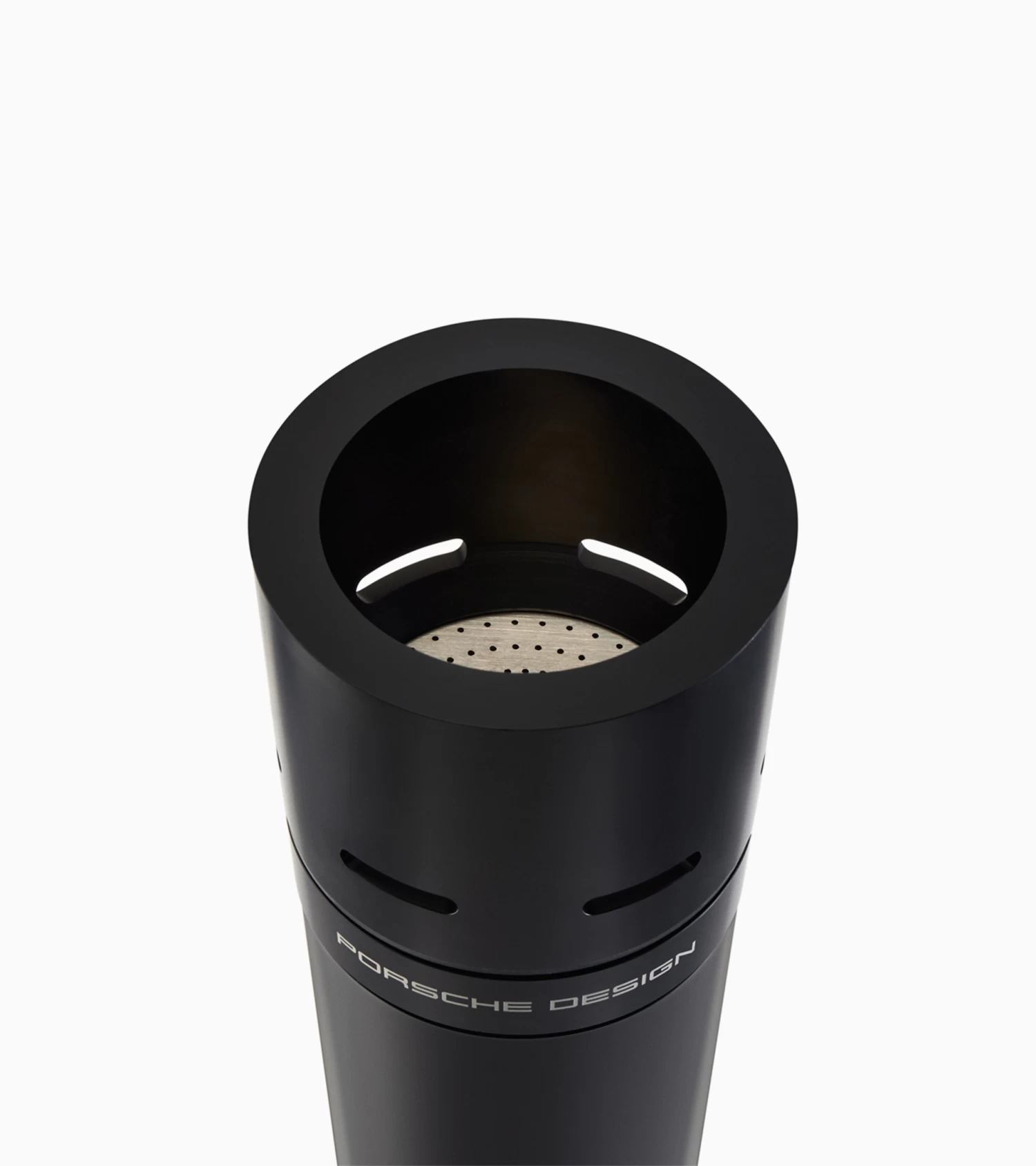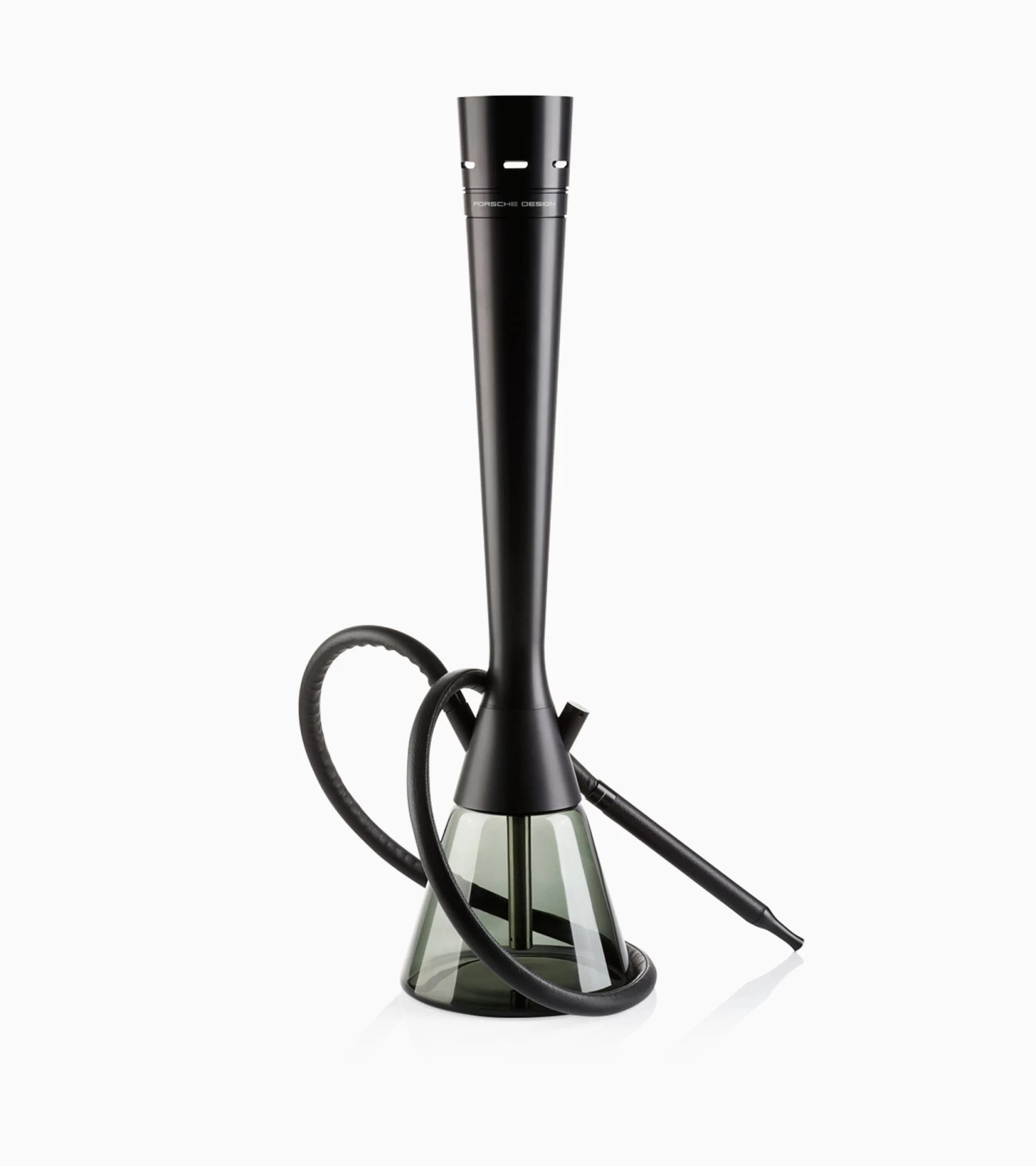 The Shisha 2.1 offers even more exclusive smoking experience in distinctive Porsche Design iconic style. The bowl is made of solid, hand-blown glass in dark grey colour. The brushed, anodized aluminium of pipe steam, base, valve, wind shield and mouthpiece offers an exciting ahead of it’s time look. The hose in leather optic and the tobacco head out of heat-resistant ceramic add the finishing touch of perfection to this high end product. The Shisha 2.1 is very easy to clean thanks to its intelligent design. Made in Germany. Total height: ca. 730 mm, width (as well as the bowl diameter): ca. 200 mm.
