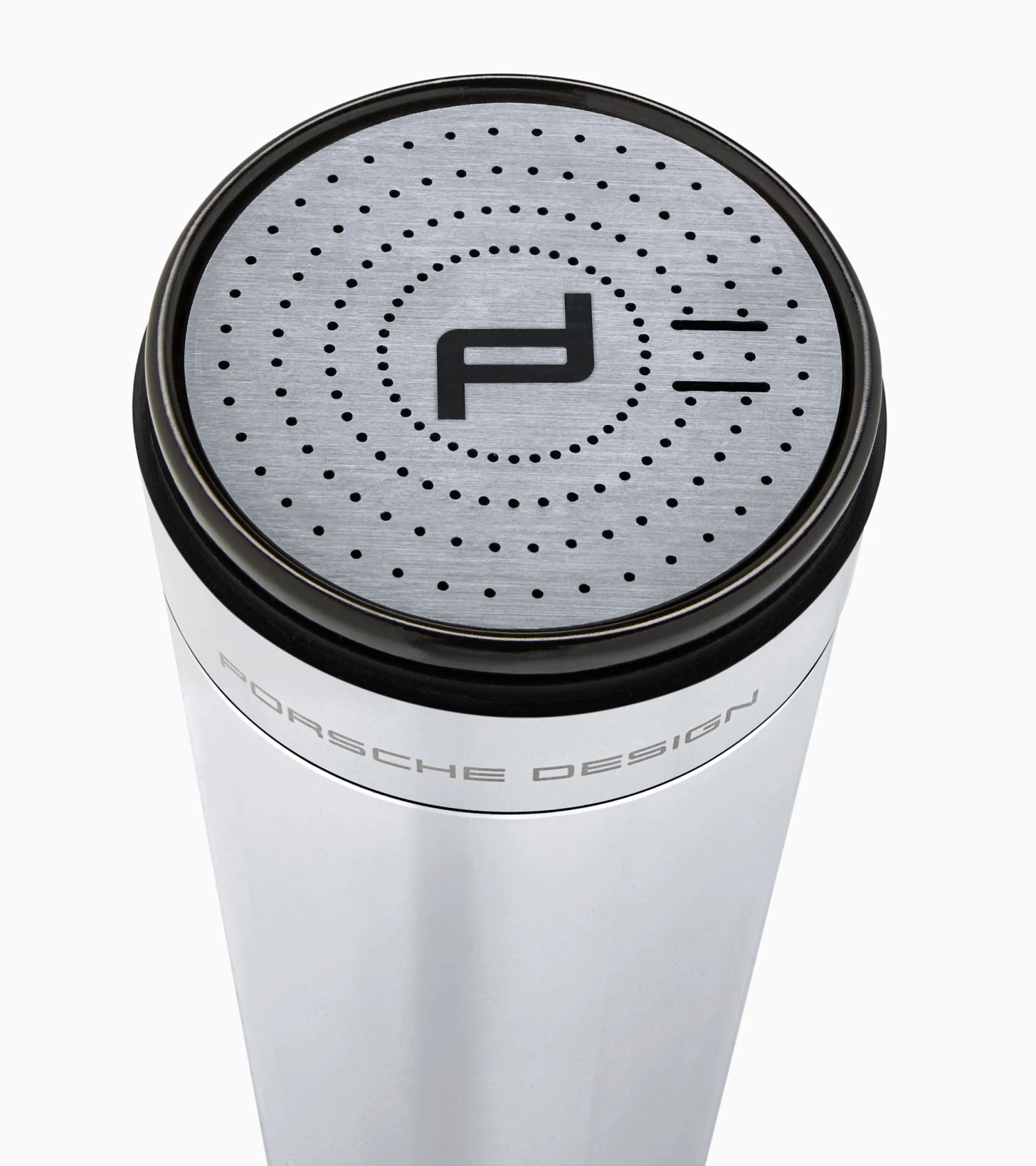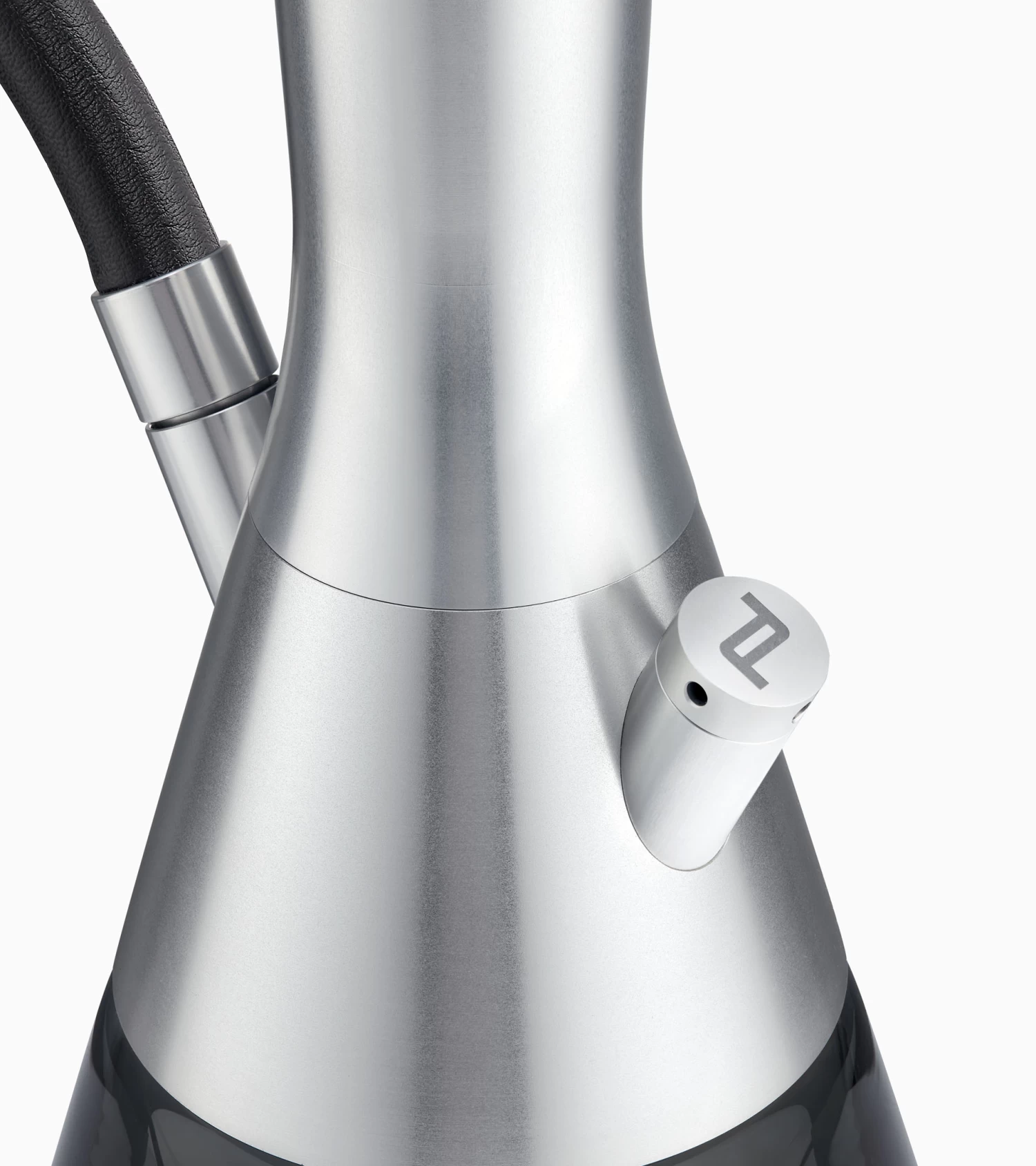 The Shisha 2.1 offers even more exclusive smoking experience in distinctive Porsche Design iconic style. The bowl is made of solid, hand-blown glass in dark grey colour. The brushed, anodized aluminium of pipe steam, base, valve, wind shield and mouthpiece offers an exciting ahead of it’s time look. The hose in leather optic and the tobacco head out of heat-resistant ceramic add the finishing touch of perfection to this high end product. The Shisha 2.1 is very easy to clean thanks to its intelligent design. Made in Germany. Total height: ca. 730 mm, width (as well as the bowl diameter): ca. 200 mm.