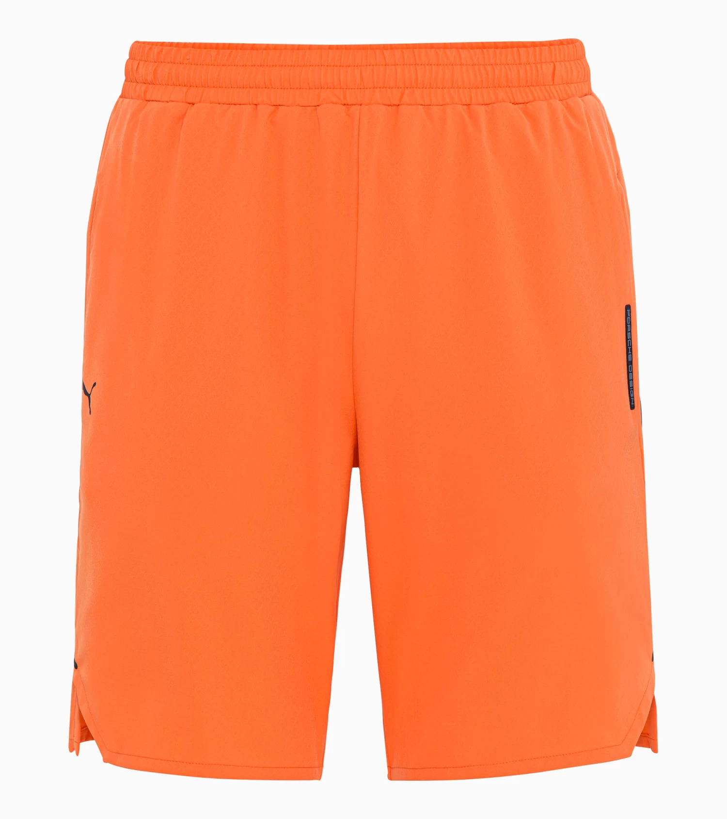 Performance in short form: these Porsche Design active shorts made of high-tech material are suitable for any activity. The single-jersey weave with ULTRAWEAVE technology combines the innovative weave technology with even greater wearing comfort that leaves a lasting impression, just like its extremely lightweight nature, dryCELL® moisture management and the maximum freedom of movement ensured by 4-way stretch. An air-permeable mesh inner slip and an elastic waistband with drawstring maximise the comfort. The pockets, including the coin pocket, can be closed with a concealed zip. A reversible pocket pouch allows you to quickly pack the shorts away.