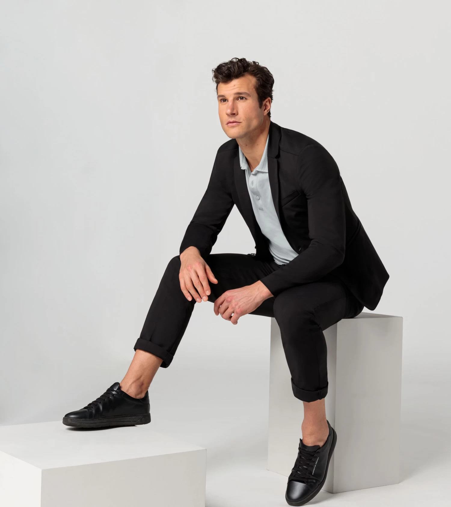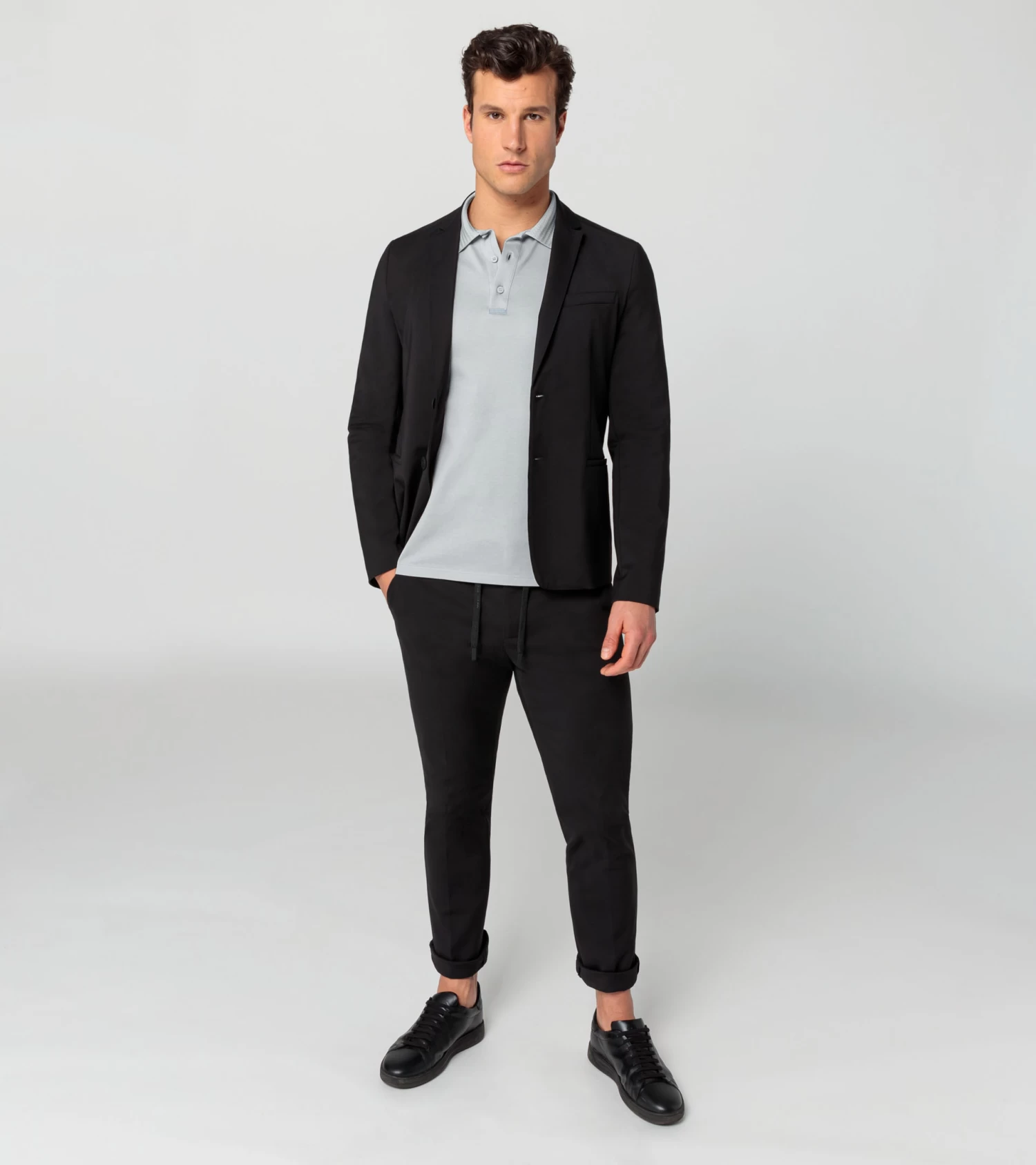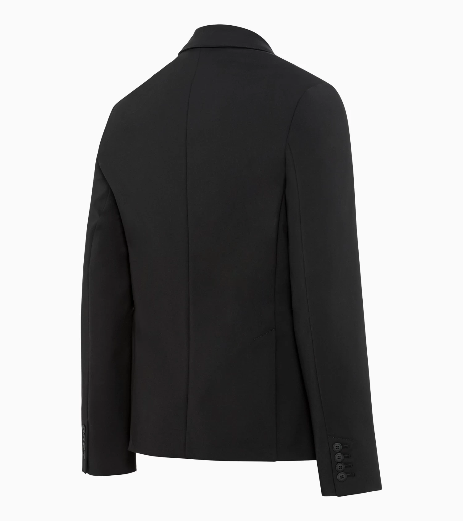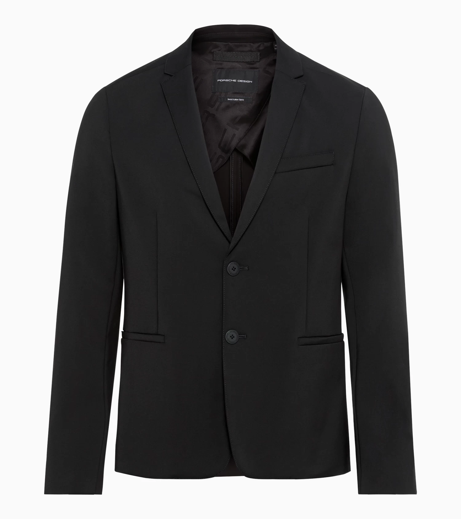 Perfects the modern athleisure look: the classic blazer with two buttons and a double vent at the back. Refined details include the slightly overlapping cufflinks, the classic breast pocket and the jacquard butterfly lining with PD icon print and two piped pockets. For all-over athleisure, the blazer can be perfectly combined with the athleisure trousers.