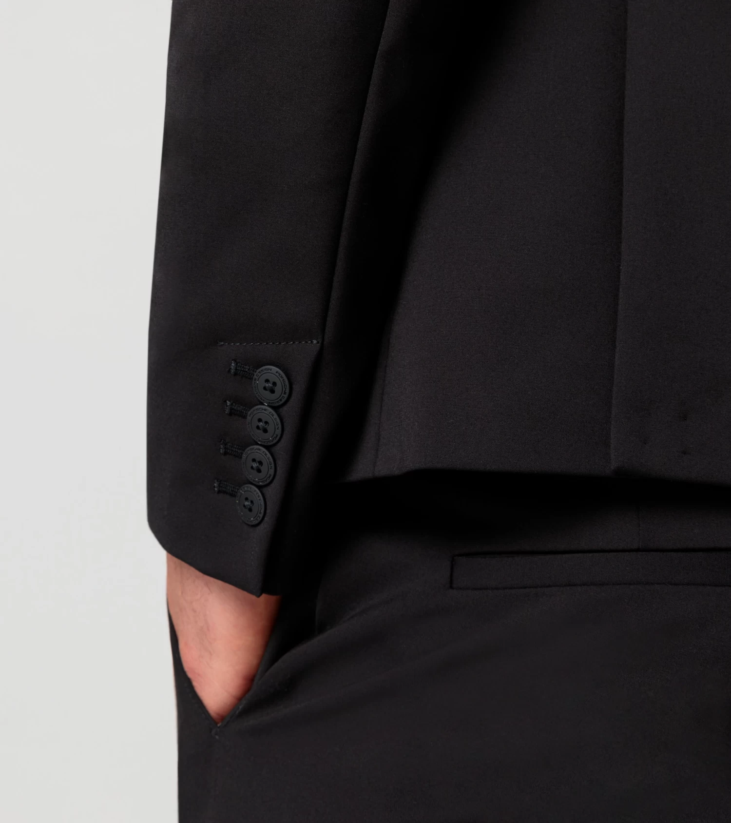 - Classic single-breasted jacket with two buttons and breast pocket.