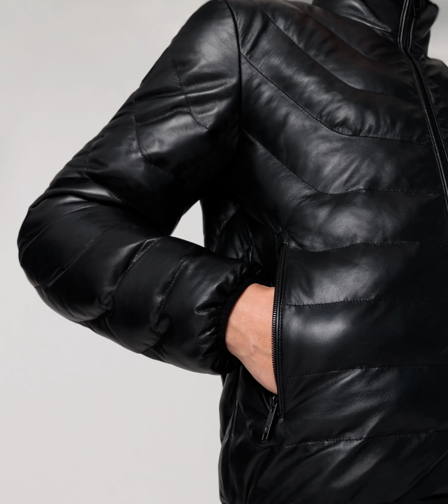 Perfects the modern athleisure look: the straight-cut, water-repellent leather jacket in the popular quilted jacket style. Refined details include the front zip puller with PD icon, the PD icon embossing on the jacket collar and the two-tone inner lining – Black at the back, jacquard at the front with PD icon print. Two hidden zip pockets at the front and two zip pockets on the inside round off the clean design. The athleisure gloves go particularly well with the jacket.