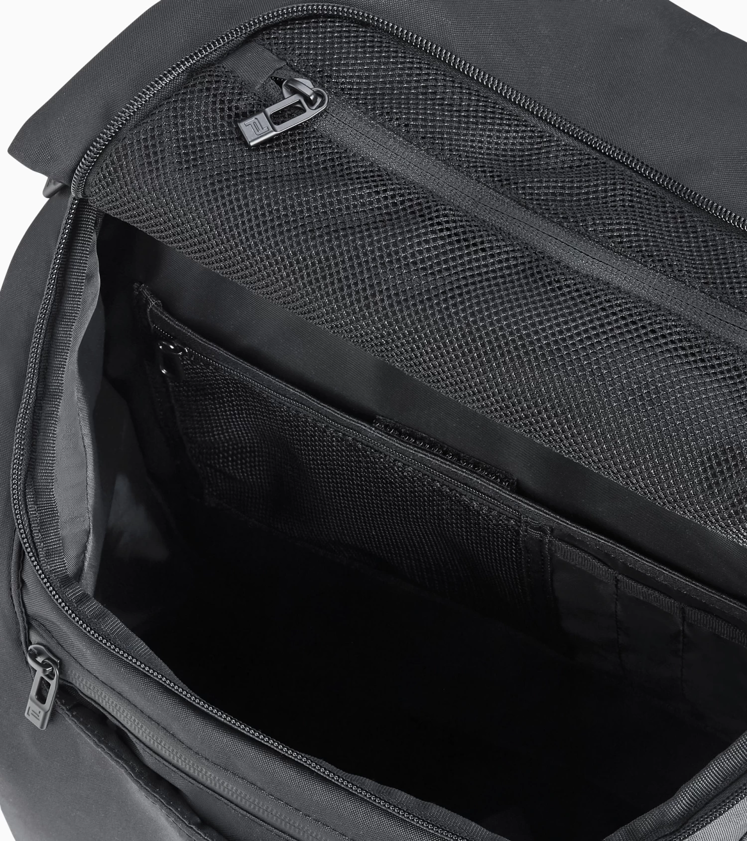 Clever features for everyday use: the stylish backpack made from recycled material is ideal for day-to-day life. It offers an integrated organisation system and an external laptop compartment, meaning your device is always at hand. The side pocket is also easily accessible –and has its own organisational layout. The flap has a pocket and the top can be closed with a zip and with a magnet. The back is softly padded. The visual highlight is a high-quality Porsche Design logo.