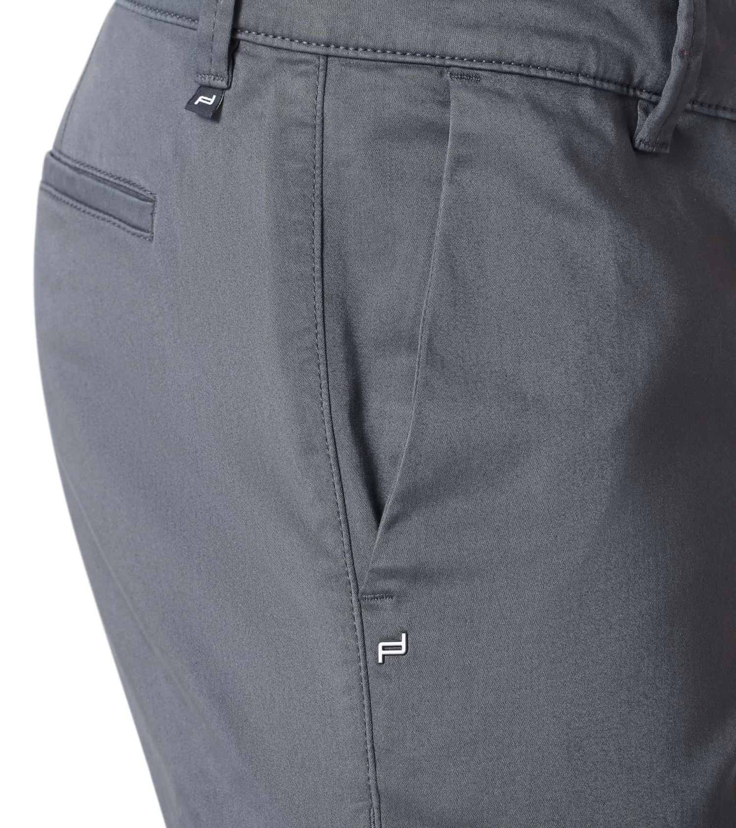 A new take on a classic: the new Porsche Design Basic Chino Regular Fit is the perfect essential for business and casual looks. This menβs chino is for those who want something different than a slim fit or a relaxed fit β just a perfectly tailored, comfortable and exclusive pair of pants. The soft, cotton elastane fabric not only exudes casual elegance, but is also extremely pleasant to the touch. Two front pockets and jetted back pockets with darts and double piping add classic chino detailing.