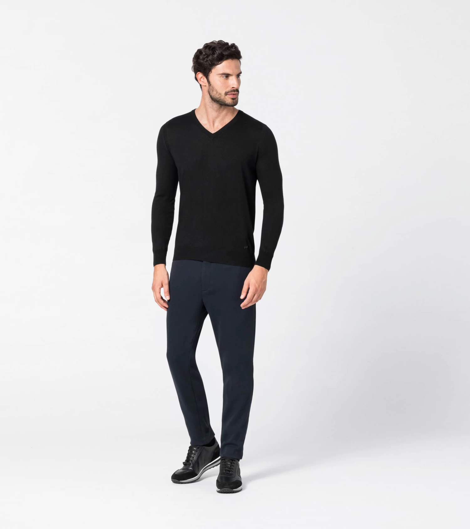 The cashmere and silk mix makes the Porsche Design V-Neck Basic Sweater a true luxury. Knitted using a fully-fashioned technique for a perfect fit, the sweater features classic ribbed sleeves and hemlines. A distinctive, signature stripe appears on the back and is finished off with a hand-sewn P-icon.