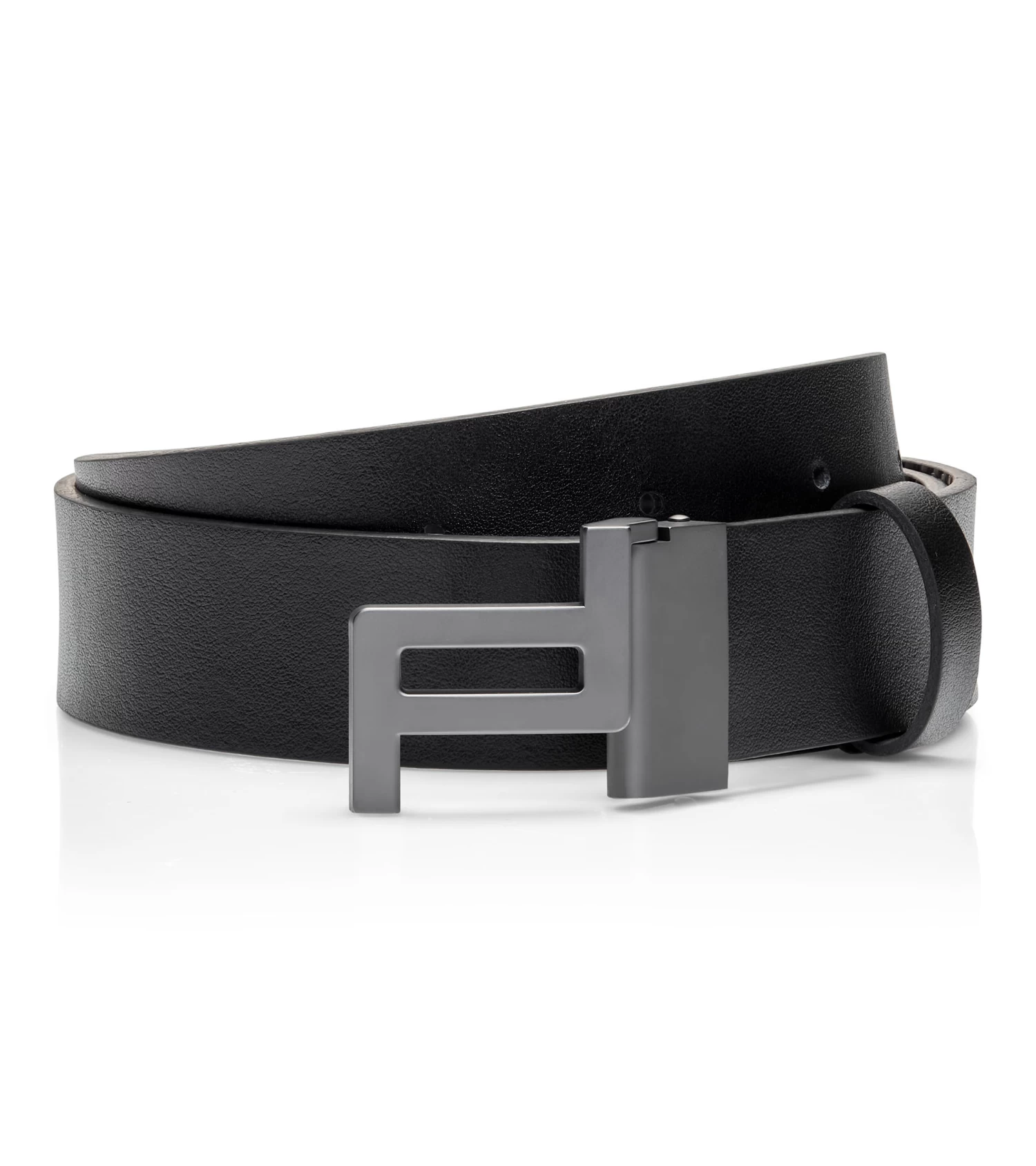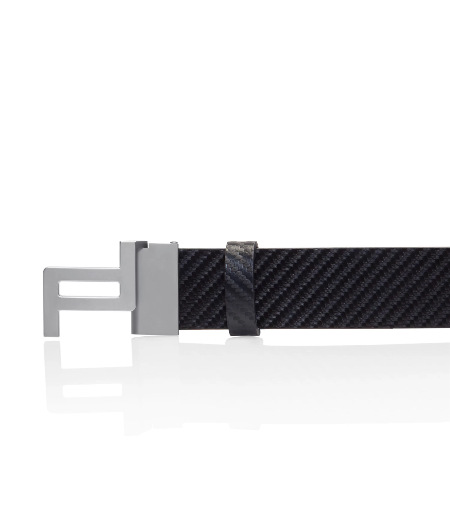Stylish statement: The Porsche Design Business Belt Icon Reversible 35 adds that extra something to business suits and outfits for formal occasions. The new PD-Icon reversible buckle in a matt titanium design is paired with a 35 mm-wide belt strap which can be worn to either side: as a variation in an exclusive carbon style which is typical for Porsche Design or a traditional version with sophisticated black smooth leather. The endpiece on the clasp not only allows the belt to be turned around but the belt strap can also easily be removed and shortened if necessary. Designed and made in Austria.