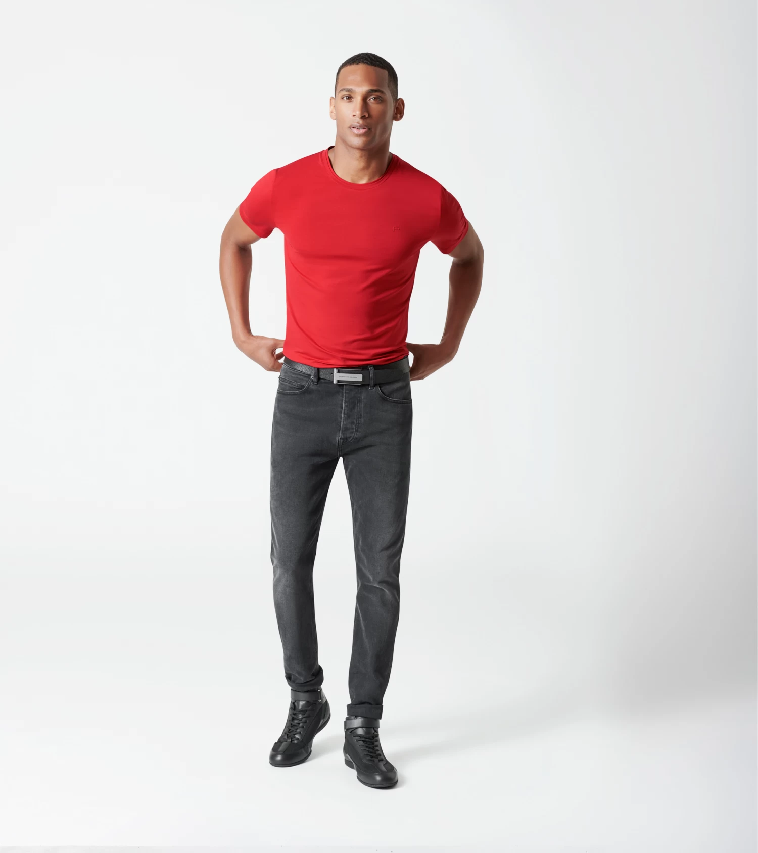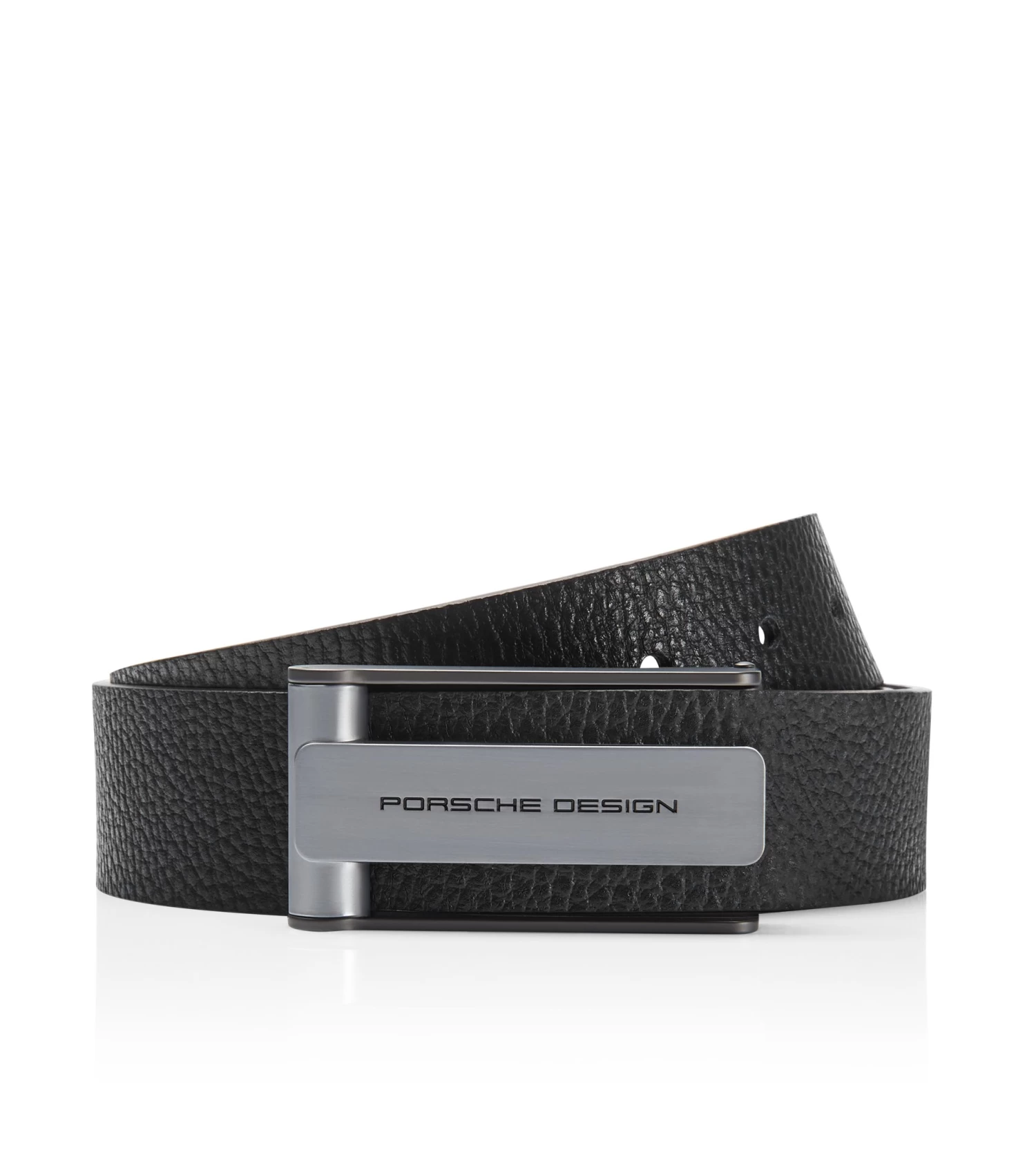 The evolution of an iconic Porsche Design product: the Porsche Design Casual Belt Hook Buckle 35. The new clip buckle takes the classic design one step further while meeting the highest demands in comfort and quality. Tighten or loosen the exclusive men’s belt using a simple push-button mechanism. The belt length can also be individually adapted in just a few motions. Soft, natural grain box calf leather and straight cut edges give the belt its sporty appeal. The 35 mm strap fits most men’s pants, such as chinos, jeans, or dress pants.
