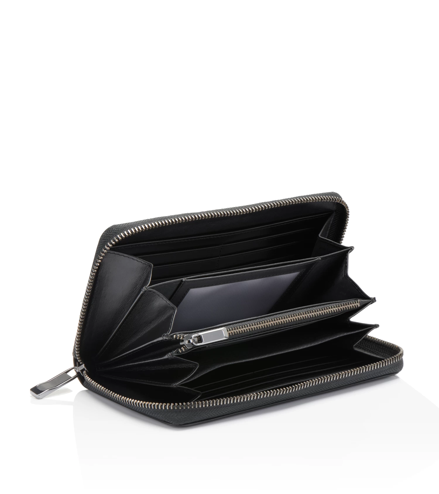 An elegant blend of style and functionality. Meet the Porsche Design Classic Collection. Made from high-quality, smooth leather in black with a seamless finish, the chic exterior, featuring the signature Porsche Design metal logo tag, gives the Porsche Design Classic Wallet 15 with Zipper its timeless and minimal look. With both high-quality interior styling and a smart design, this men’s wallet is impressively spacious for its compact shape. It also features an all-round zip. With 15 card slots, one zip pocket for coins, four spacious compartments for documents, one mesh pocket for ID, and two pockets for bills, this wallet has generous space for all your essentials.