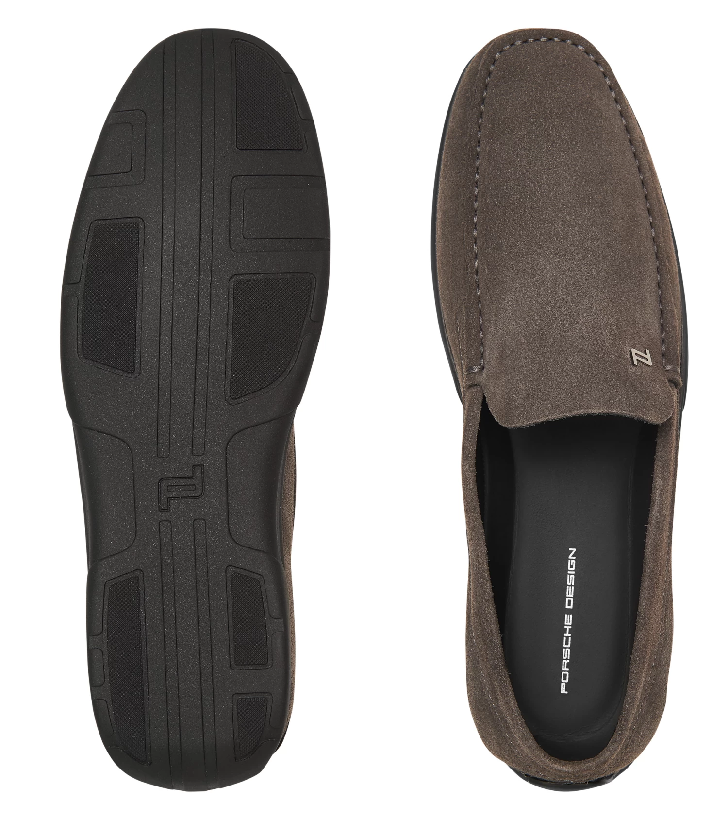 Developed for maximum comfort and superior pedal performance: the Porsche Design Driver Velours, crafted from soft velour leather, is the official successor to the legendary Beverly Hills Moccasin. Robust, lightweight, with extra grip – the driver’s shoe of a new generation. Classic handstitched seams are paired with exclusive elements like the ergonomic Porsche Design anti-slip sole. The upward curve of the heel protects the leather upper while driving. And the footbed features arch support – just a small detail, but one that never ceases to delight.
