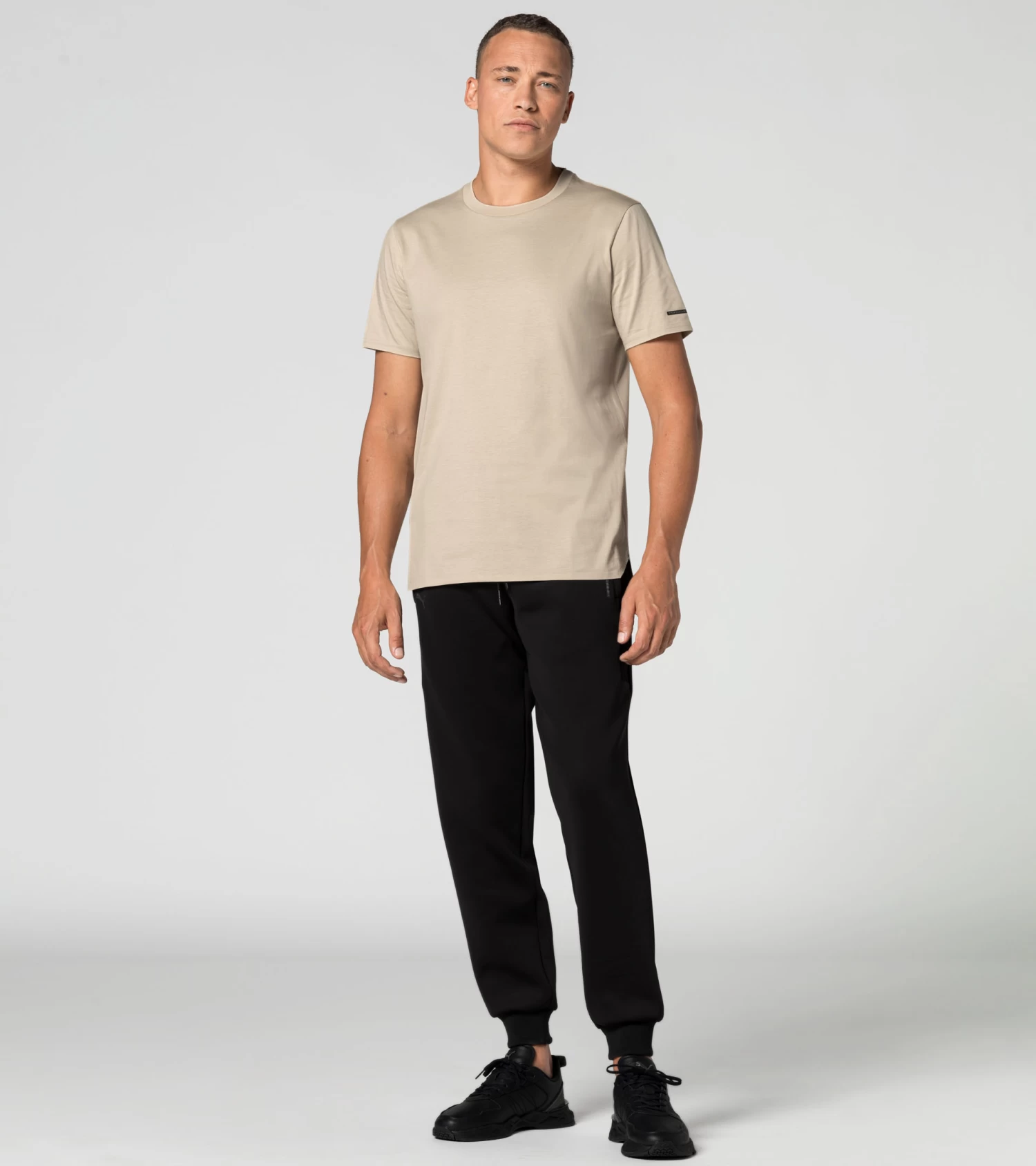 Maximum freedom of movement. Minimalist style. The Porsche Design essential T-shirt is called that for a reason. Reduced to the essentials β the highest quality and the perfect cut β it is the ideal T-shirt for active everyday life. The moisture-regulating cotton fabric and the hybrid sleeve construction ensure maximum comfort and freedom of movement. Details like the flat-glued, bonded hems with reflective tape give the shirt a technical look. Design β completely essential.