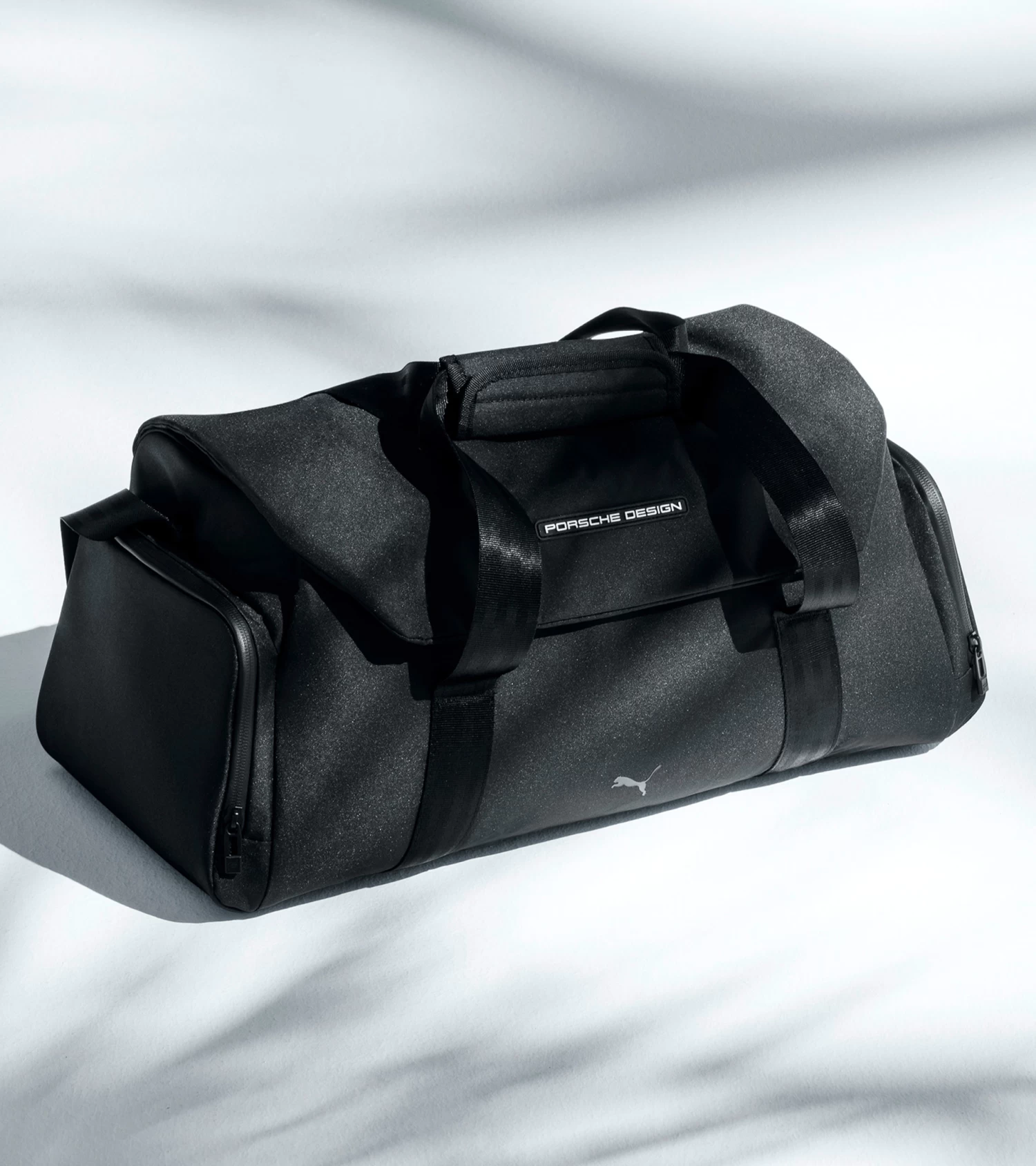Clever organisation: this exclusive sports bag made from recycled material offers an integrated organisation system and two additional side pockets. There is another zipped pocket on the back, which is handy for smaller items. The bag can be closed using a zip and a magnet. Particularly flexible, the bag features useful carrying handles and a detachable shoulder strap. The visual highlight is a high-quality Porsche Design logo.