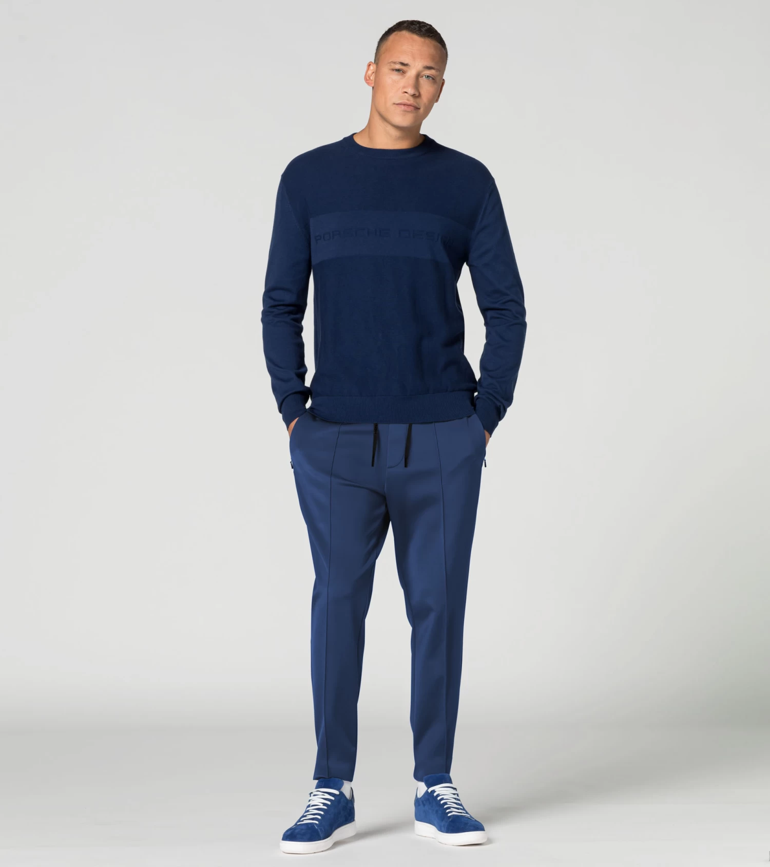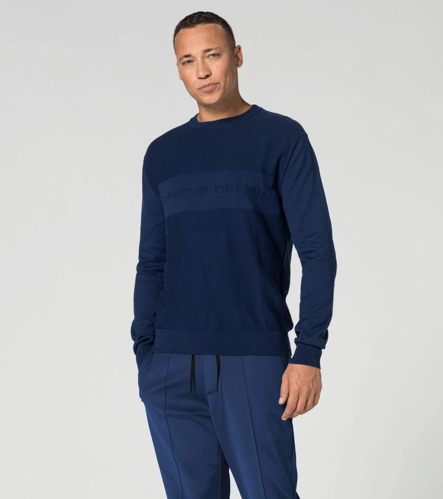 Reduced to the essentials: the different knit structures ensure sophisticated elegance and make the Porsche Design sweatshirt a truly premium product. The jacquard logo on the front provides an exclusive highlight.