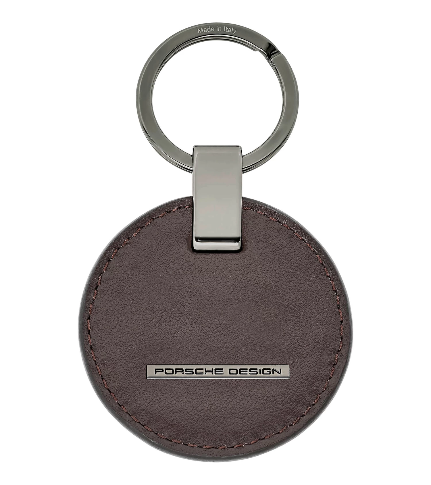 The circle: the perfect geometrical form. It conveys coherence, and looks strong and sympathetic at the same time. For the Porsche Design Keyring Circle, the timeless form is given a modern interpretation: A circular fob made from leather is combined with a split ring and metal plate in cool gunmetal. The metal strip with Porsche Design logo mounted on the leather provides an exclusive, but subtle accent. Thanks to the soft shape and soft leather, the key ring sits comfortably in the hand. The Circle key ring is available in various colors, coordinated to the colors of the Porsche Design Roadster Hardcase luggage series.