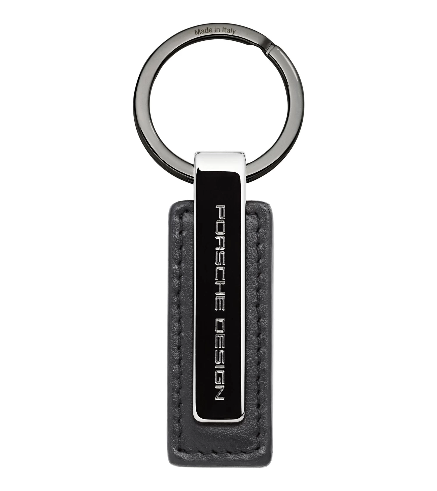 Straight lines. Markedly different. Exclusive. The Porsche Design Keyring Metal Bar is made for men who appreciate clean design and technical heritage. The look of the key ring is defined by a metal plate in gunmetal with Porsche Design engraving, lined with high-quality, smooth leather for a pleasant feel in the hand. Leather and metal are visibly screwed together – a discreet reminder of automobile construction. A classic split ring, likewise in gunmetal, holds your keys securely together.