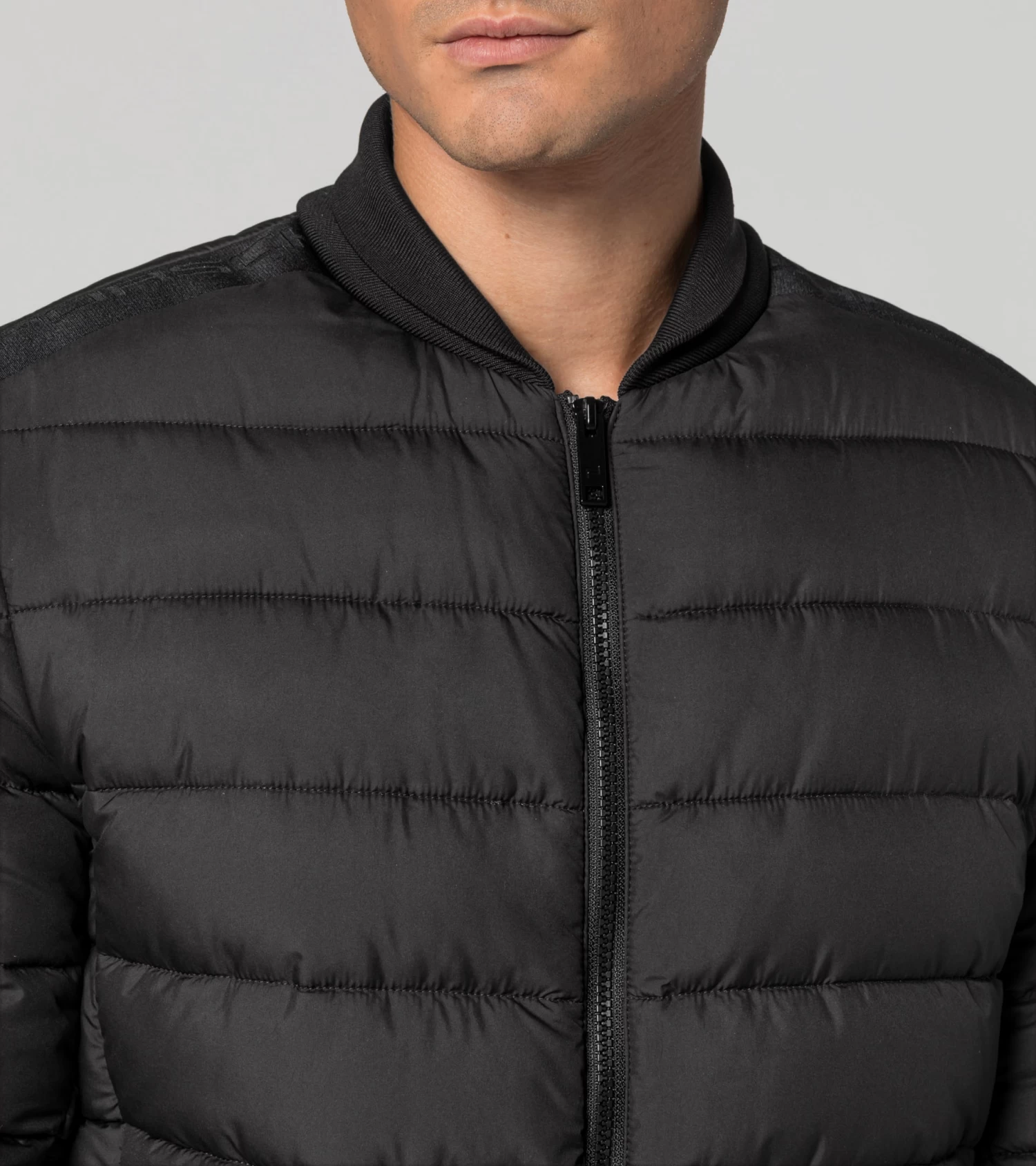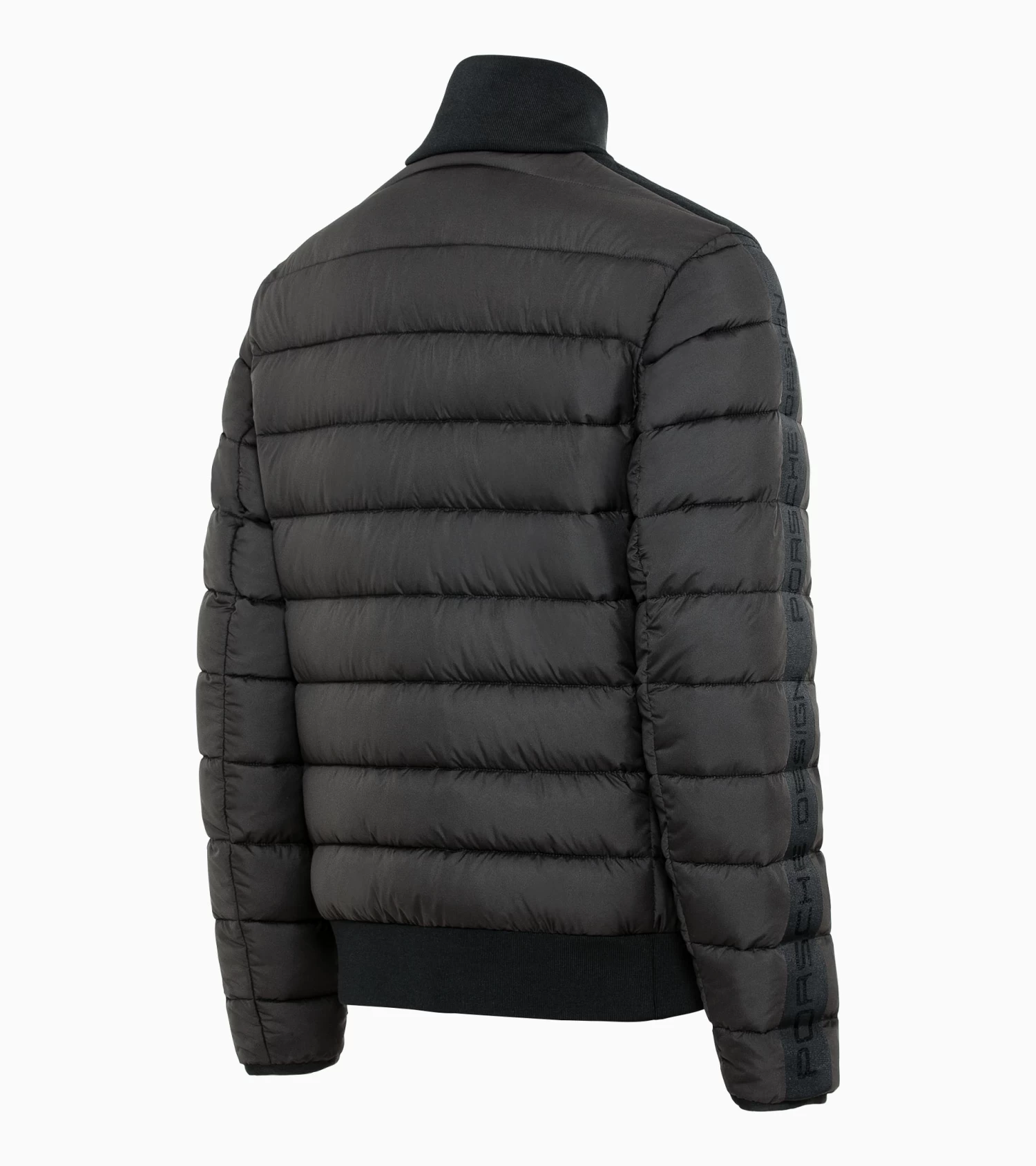 Lighter in winter: the lightweight Porsche Design jacket combines the latest production technology with exclusive design. The one thing that stands out above all is the fact that the jacket is particularly light due to the down-free filling from a special fibre filling machine. Externally, small horizontal quilting will impress, while on the inside it features sandwich quilting and two pockets. A foldable circular knit collar and elastic cuffs on the sleeves offer protection from the cold. Specially made zips andelastic cuffs with the Porsche Design logo on the shoulders and sleeves complete the look.