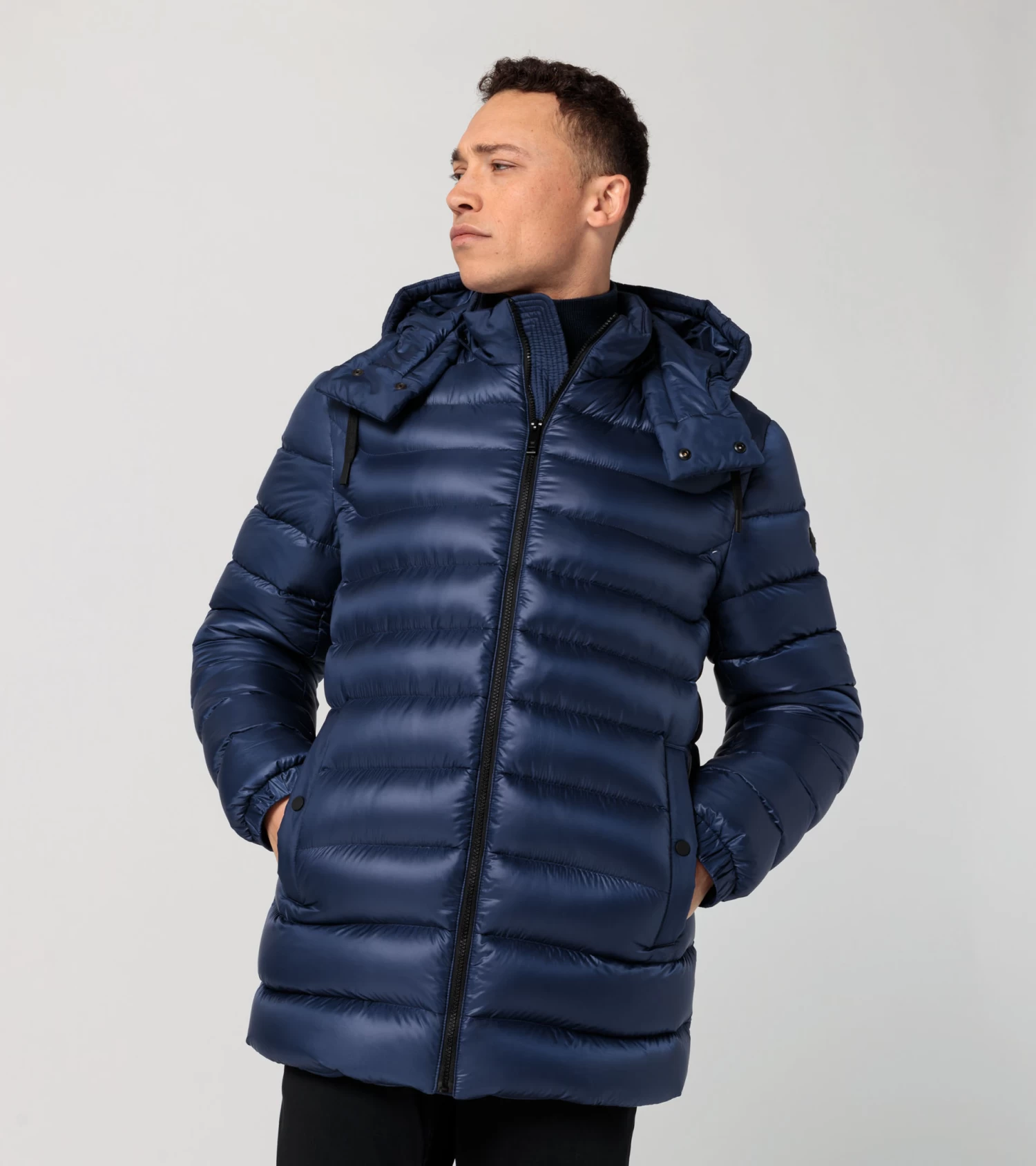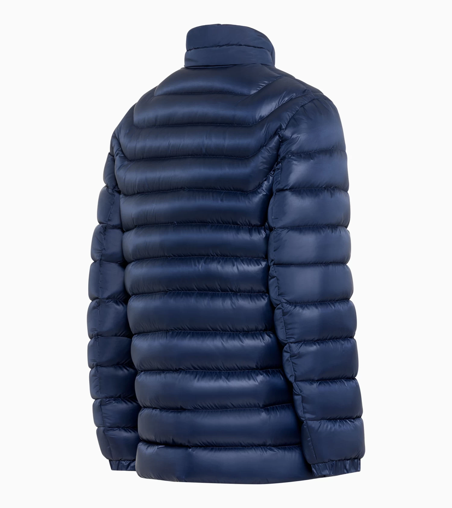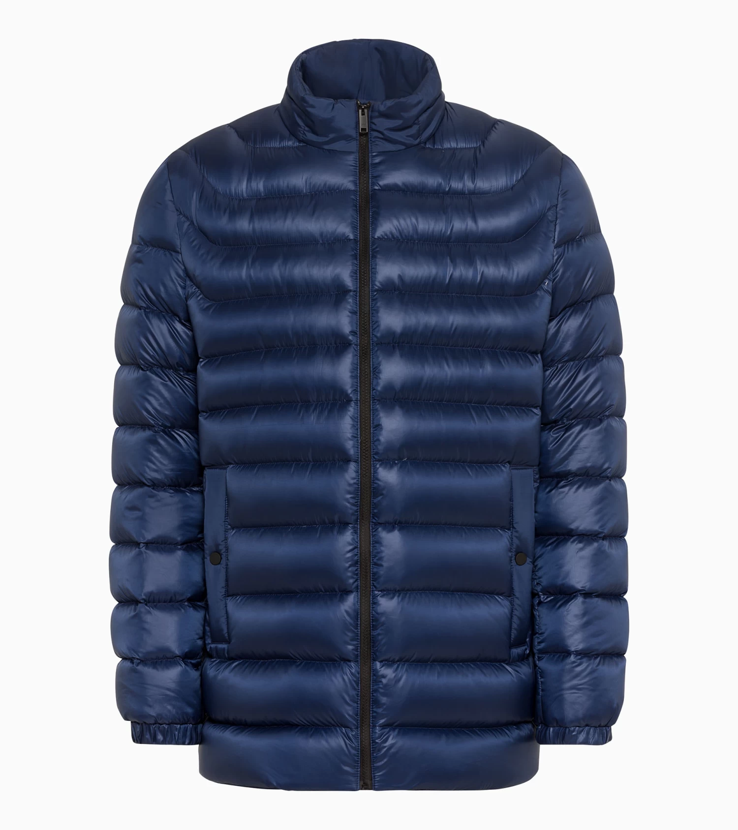 Light as a feather – without any feathers: the straight-cut parka with down-free filling is perfect for the transitional seasons. The two pockets at hip height can be closed with press studs and the pockets on the inside can be closed with zips. Refined details typical of Porsche include the parka’s detachable hood and the tailor-made zip pullers.