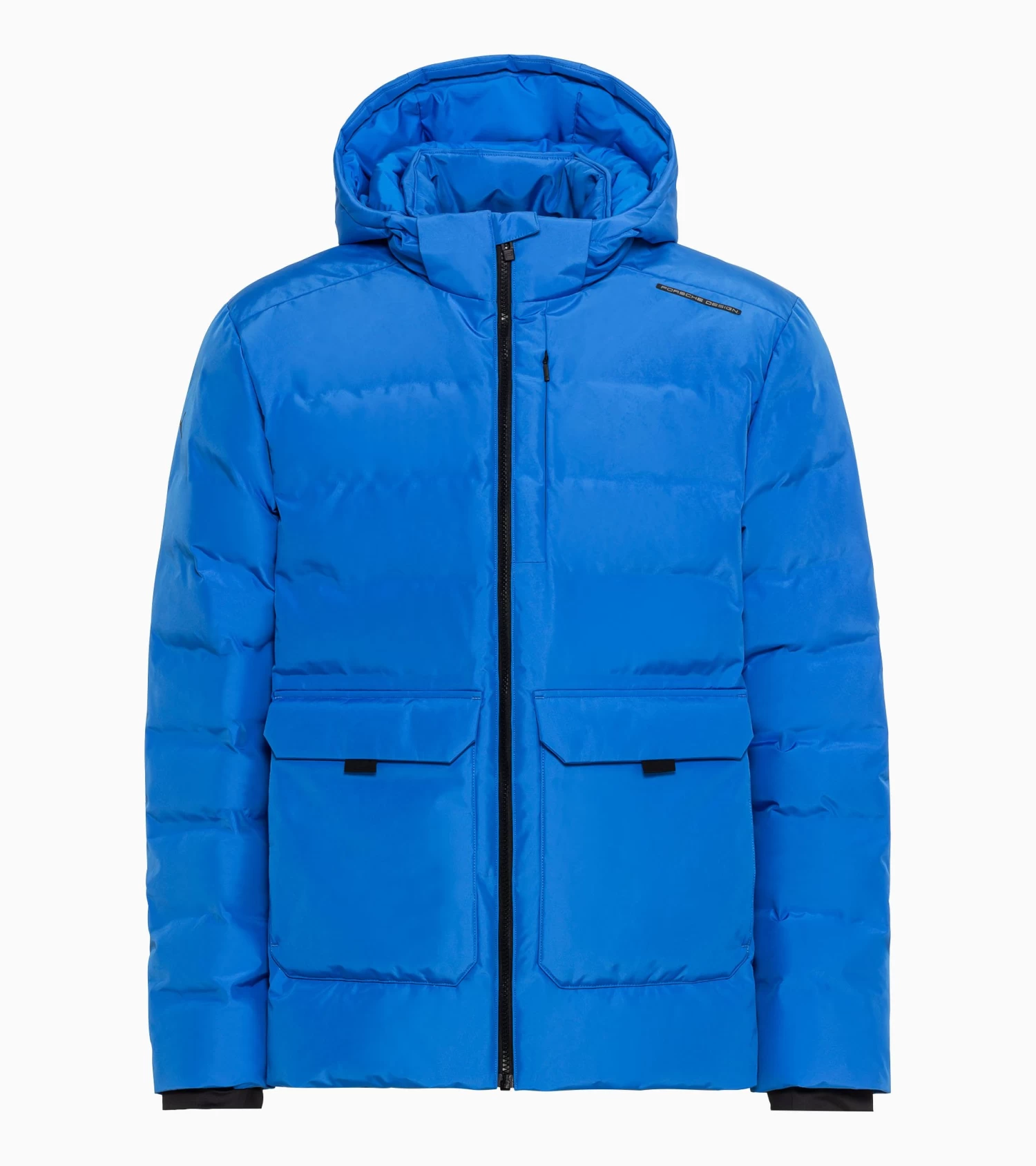 Smart and stylish throughout the winter: the padded jacket made of innovative three-layer material with stormCELL® technology, waterproof lamination and a breathable membrane is a real must-have for the cold season. A warm UNIFI fibre filling is hidden behind the dynamic quilting. The fit and ventilation can be adjusted as required using the full-length zip with a mesh strap underneath. The hood is detachable. Inner cuffs with thumb holes protect against moisture. The inner loop with Porsche Design branding is a real highlight and can be used to carry the jacket over the shoulder when the temperature rises. The hidden breast pocket with zip and the fleece-lined pockets at hip height, which are accessible via a magnetic fastening from above and a zip from the side, are also cleverly designed – perfect for keeping your hands warm. Inside there is a zip pocket and a bonded pocket, in which smaller valuables can be kept safe. The back hem of the puffer jacket is decorated with the embroidered Sympatex® logo.