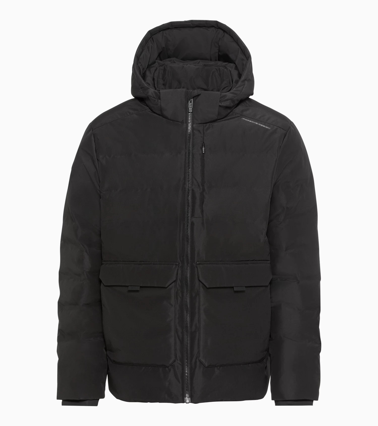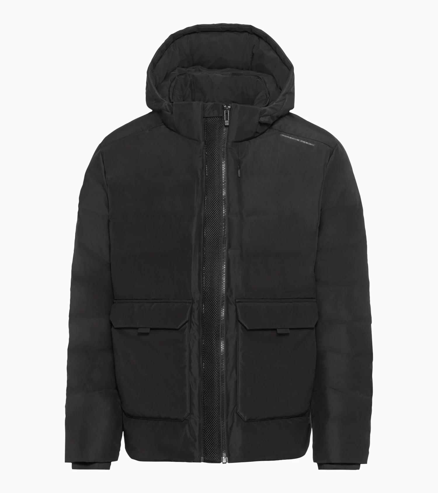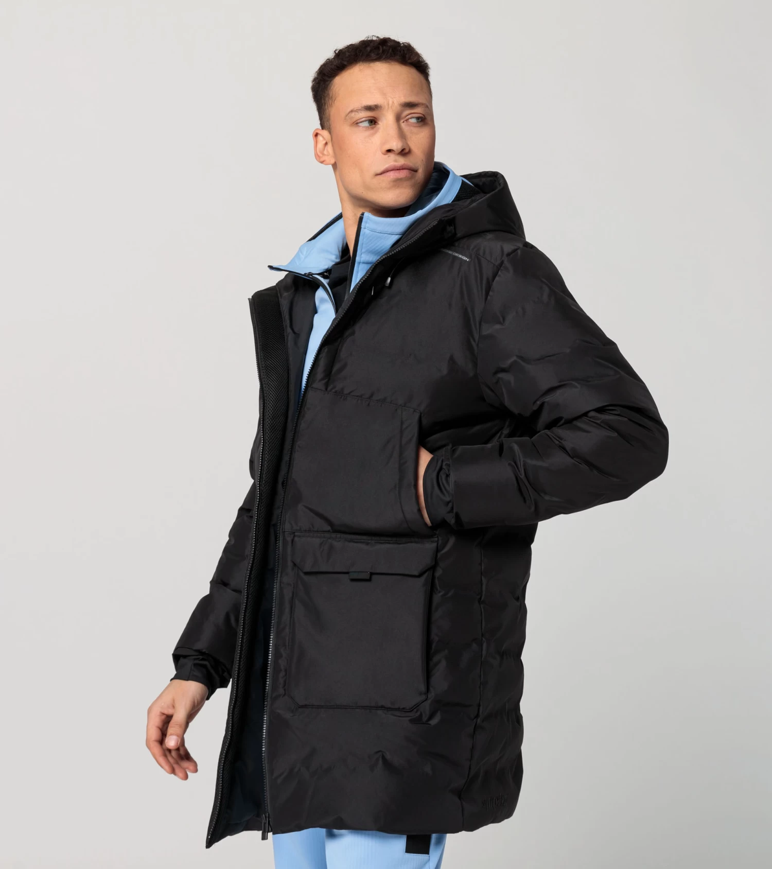 Smart and stylish throughout the winter: the padded parka made of innovative three-layer material with stormCELL® technology, waterproof lamination and a breathable membrane is a real must-have for the cold season. A warm UNIFI fibre filling is hidden behind the wide quilting. The fit and ventilation can be adjusted as required using the two-way zip with a mesh strap underneath. Maximum comfort in wind and weather: the hood is adjustable and inner cuffs with thumb holes protect against moisture. The hidden breast pocket with zip and the fleece-lined hip pockets, which are accessible via a magnetic fastening from above and a zip from the side, are also cleverly designed – perfect for keeping your hands warm. Inside there is a zip pocket and a bonded pocket, in which smaller valuables can be kept safe. The back hem of the parka is decorated with the embroidered Sympatex® logo.