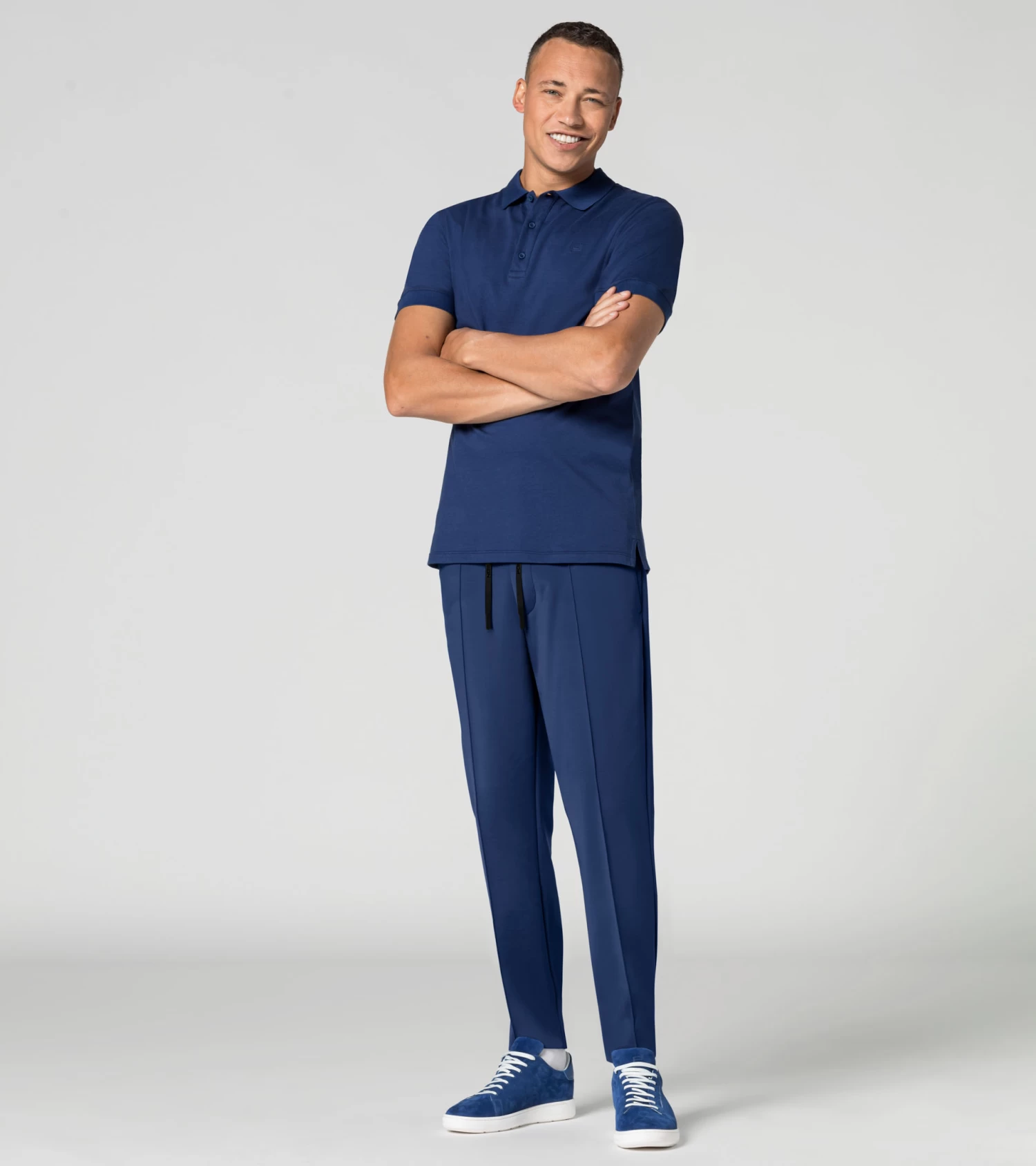 Casual but stylish: the slim-fit Porsche Design PD icon polo is perfect for leisure activities. The cotton blend polo shirt impresses with its high-quality materials and modern details. Knitted structured stripes on the collar of the polo shirt, ribbed sleeve cuffs and rubberised buttons made in Italy with the Porsche Design logo all give the shirt a sporty touch. The mercerised cotton fabric emphasises the modern casual cut perfectly. The exclusive design is rounded off by a stamped Porsche Design icon.