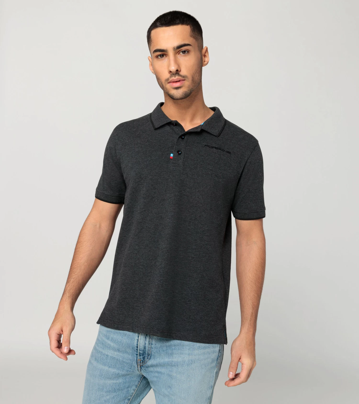 The unique anniversary collection honours the birth of the brand in 1948, marking the date when the first Porsche sports car received its general operating licence on 8 June, 1948. A large ’75’ including embroidered years features on the back of the ’75Y’ polo shirt. ‘PORSCHE’ lettering is also embroidered below the number and on the chest. Small details in the anniversary colours – a striped band on the neck and closure and the two-tone button thread – round off the design.