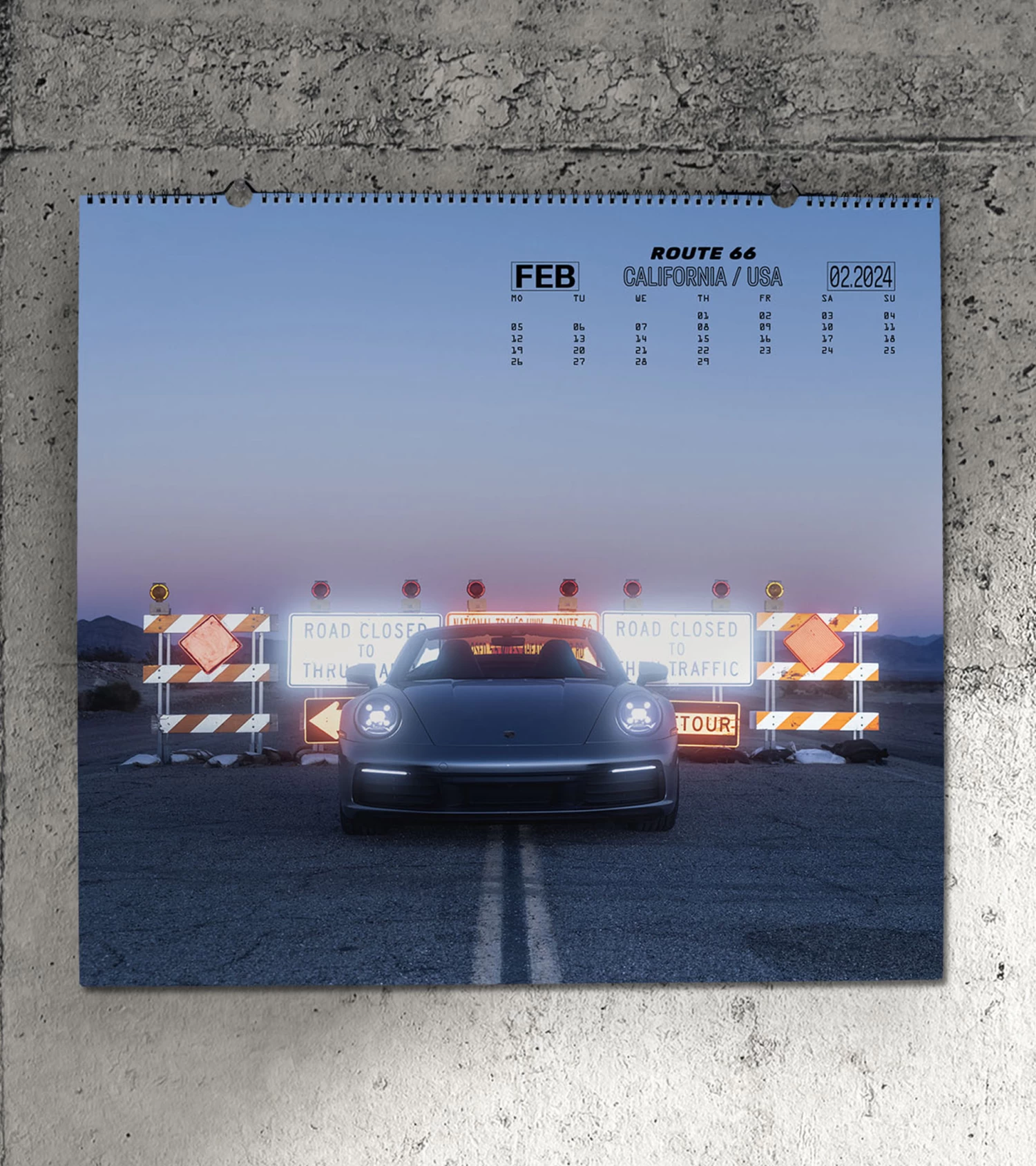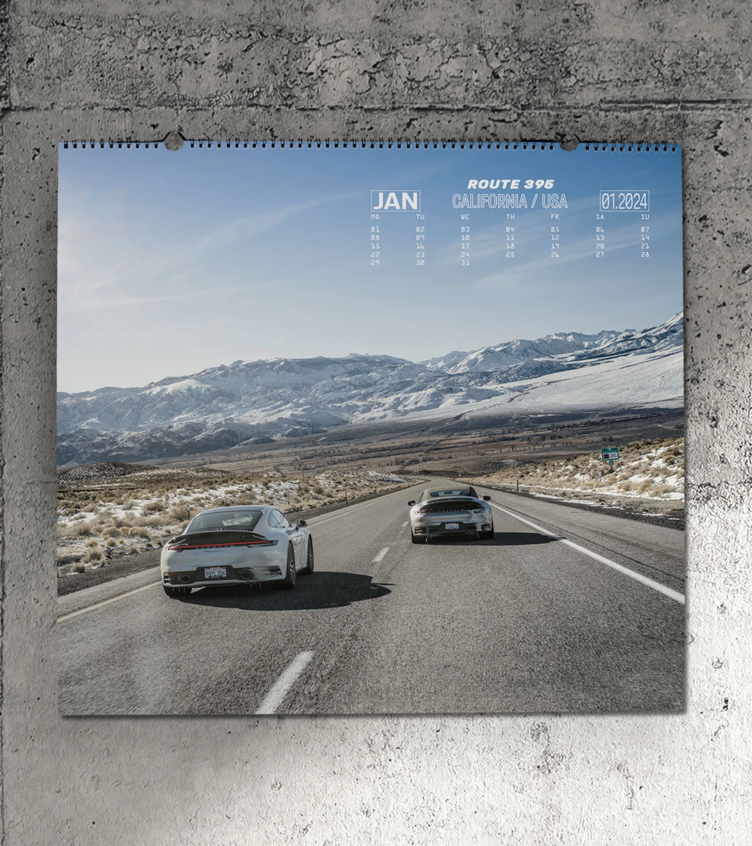 Where can driving spirit, a sense of freedom, fun, and adventure be better captured than on a road trip behind the wheel of a Porsche. The Porsche ‘AHEAD South-West 2024’ calendar showcases unknown streets and places, unique people and their fascinating stories.AHEAD opens a new chapter and tells the stories that are written while exploring unknown roads. ‘AHEAD South-West 2024’ starts this chapter with the first stories: join two 911s on their road trip through the western United States. From California to Nevada, to Los Angeles and Las Vegas, through Death Valley and the Sierra Nevada. Deserts, snowy landscapes, the sunny coast and glittering city lights. From sunrise to sunset, day and night – breathtaking pictures for the whole year.
