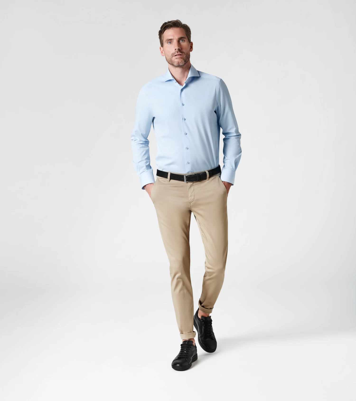 The men’s shirt for every occasion – always ready for long days and nights. The Porsche Design Business Shirt Slim Fit features an well-tailored fit with a cutaway collar and unmistakable Porsche Design details such as rubberised buttons and tone-on-tone embroidery on the cuffs. Plus, a functional highlight that keeps pace with your busy schedule: the exclusive, easy-iron Italian fabric by Thomas Mason is not only fully opaque but also equipped with a “less crinkle” effect that makes it especially resistant to creases.