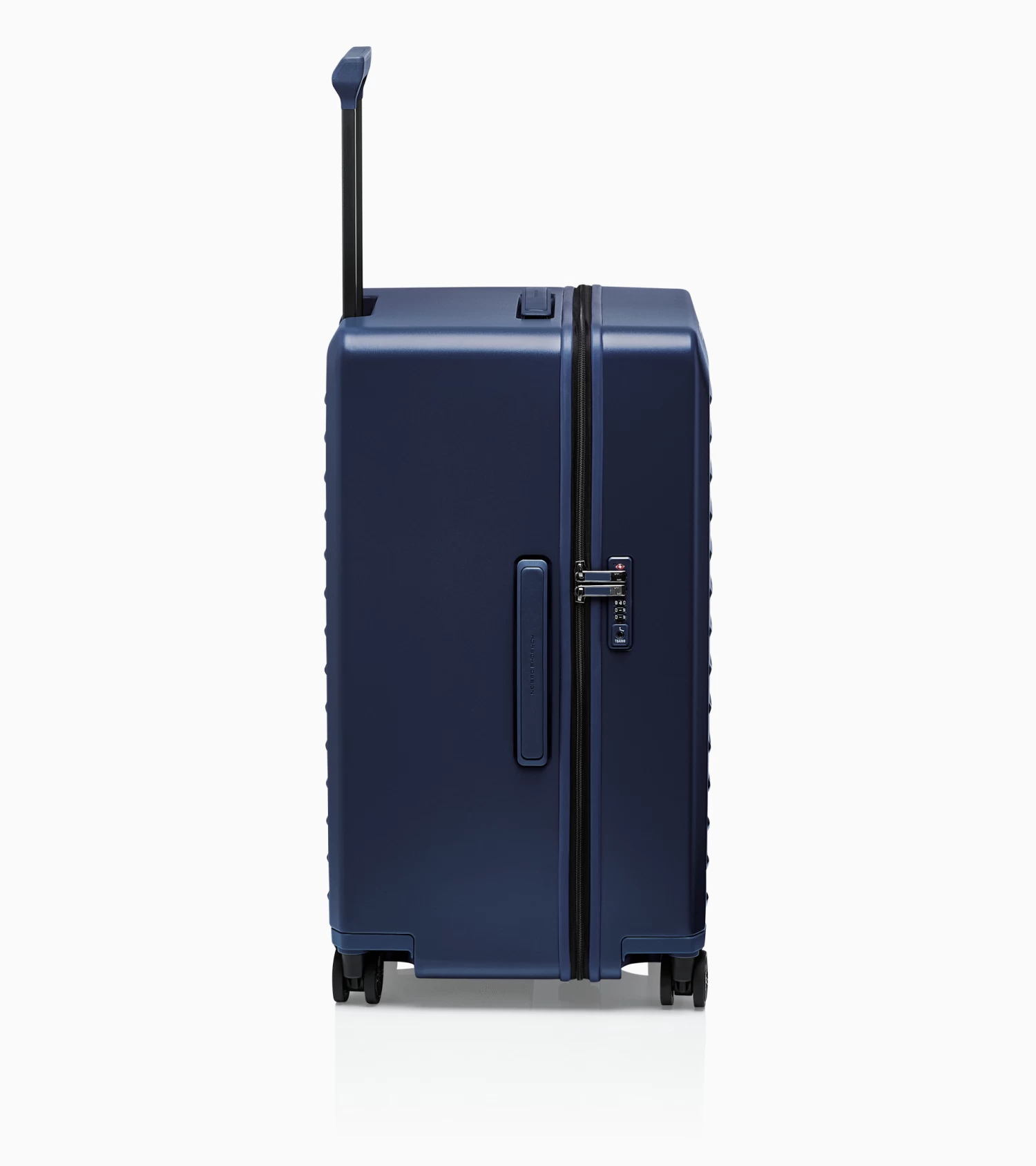 Ultra lightweight and inspired by the colors of the Porsche 911: the Roadster Hardcase collection. The case series in polycarbonate designed by Studio F. A. Porsche is the perfect fusion of form, function and design. The medium Porsche Design Roadster Hardcase 4W Trunk M catches the eye with its dynamic, monochrome look with Porsche signature details—and modern proportions for maximum space when packing. Ball-bearing-mounted, smooth-rolling wheels in the style of the Porsche Taycan rims and an ergonomic multi-height handle ensure optimum performance. Your laptop case and other items can be effortlessly placed and removed over the rounded edges of the handle. The divided interior is lined with signature PD fabric—and is protected by an ultra-secure two-way zipper and a TSA-approved lock.