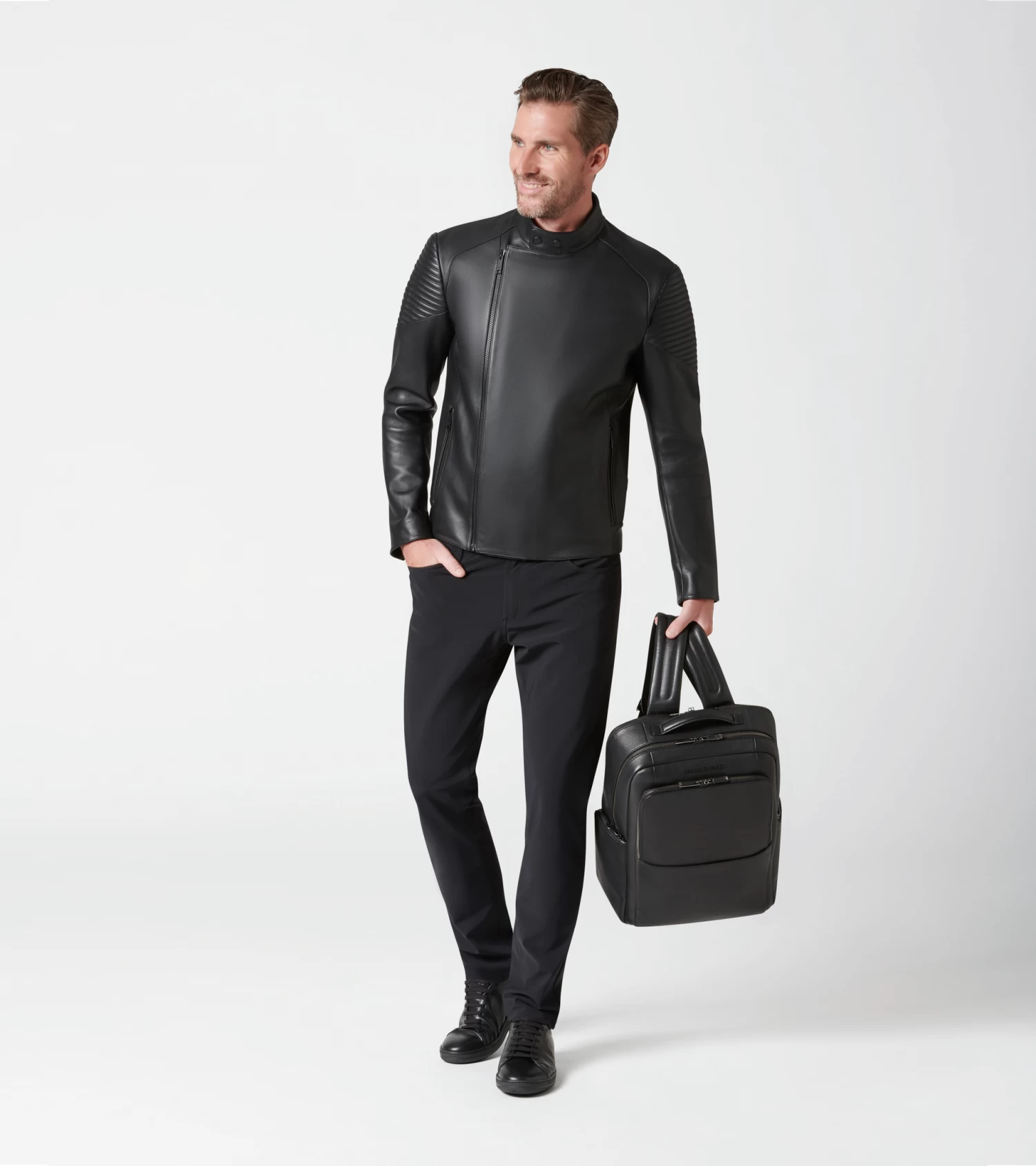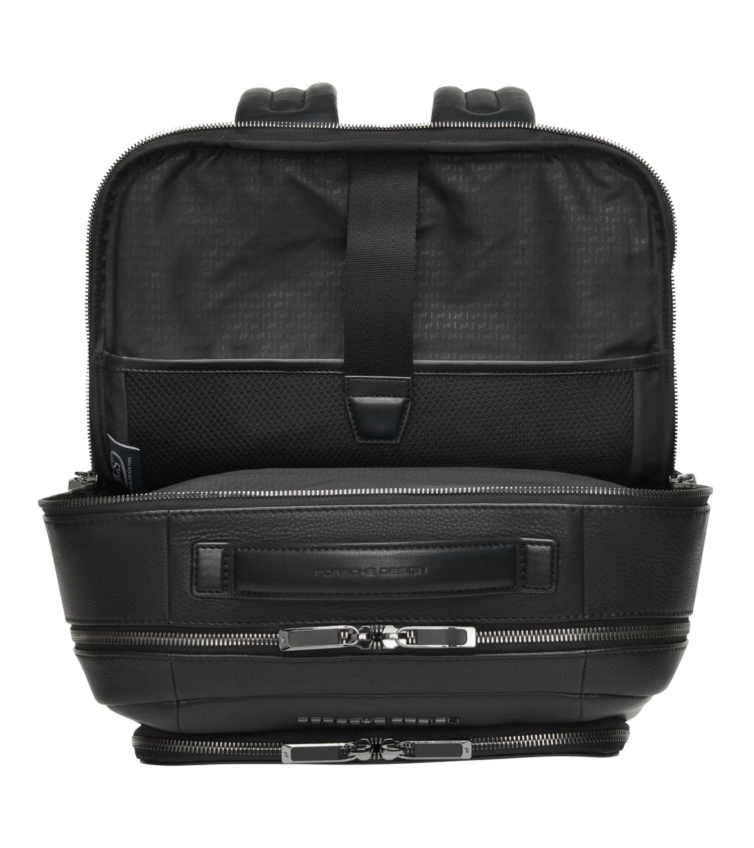 Soft, full-grained calf leather meets perfect features: The Porsche Design Roadster leather collection has been exclusively designed to meet the high expectations of business travelers. The large Porsche Design Roadster Leather Briefcase L is the perfect choice for the daily commute. Like all the bags and rucksacks in the series, it is crammed with smart details. The 15-inch notebook compartment behind the main compartment can easily be fully opened at check-in.