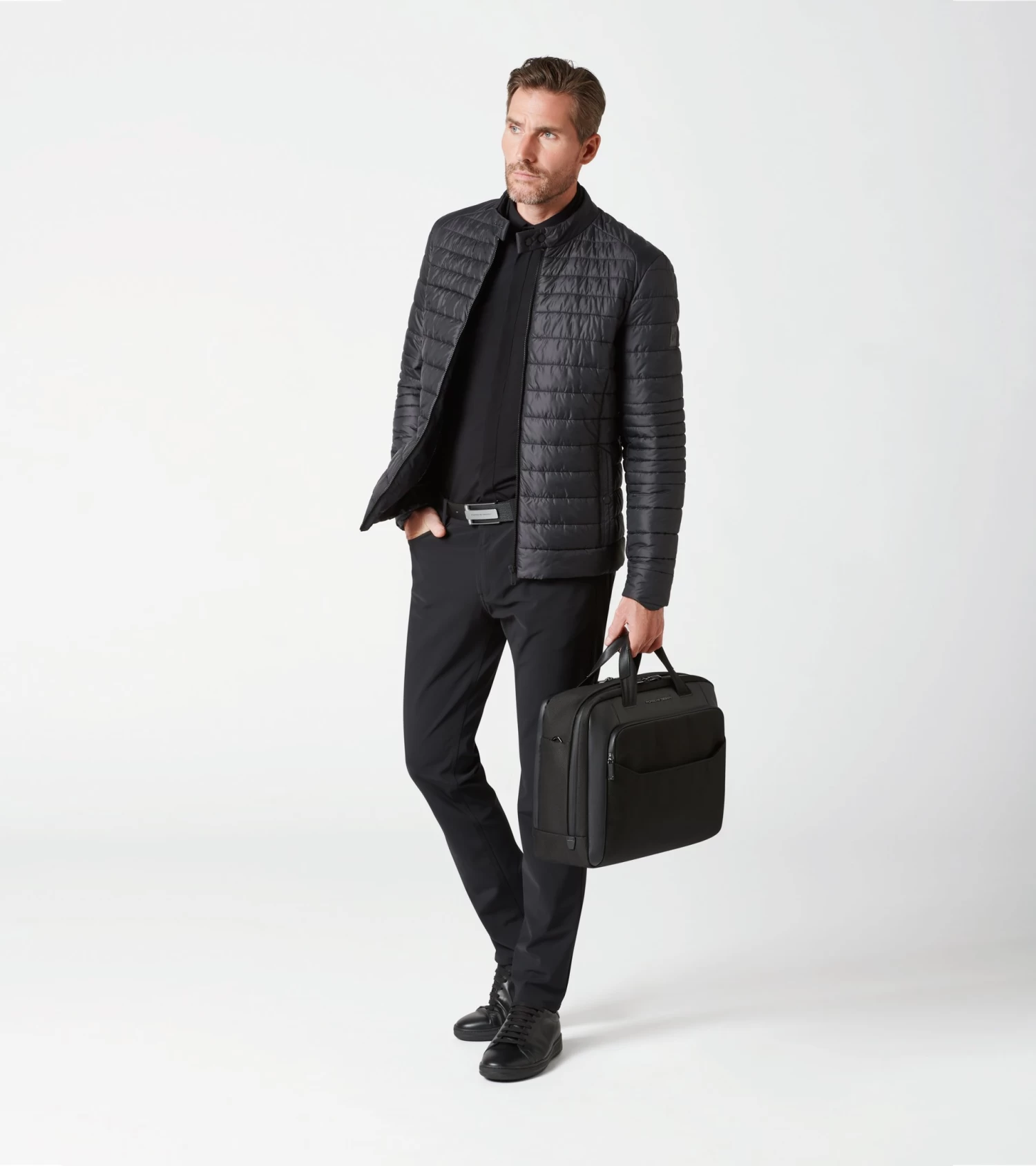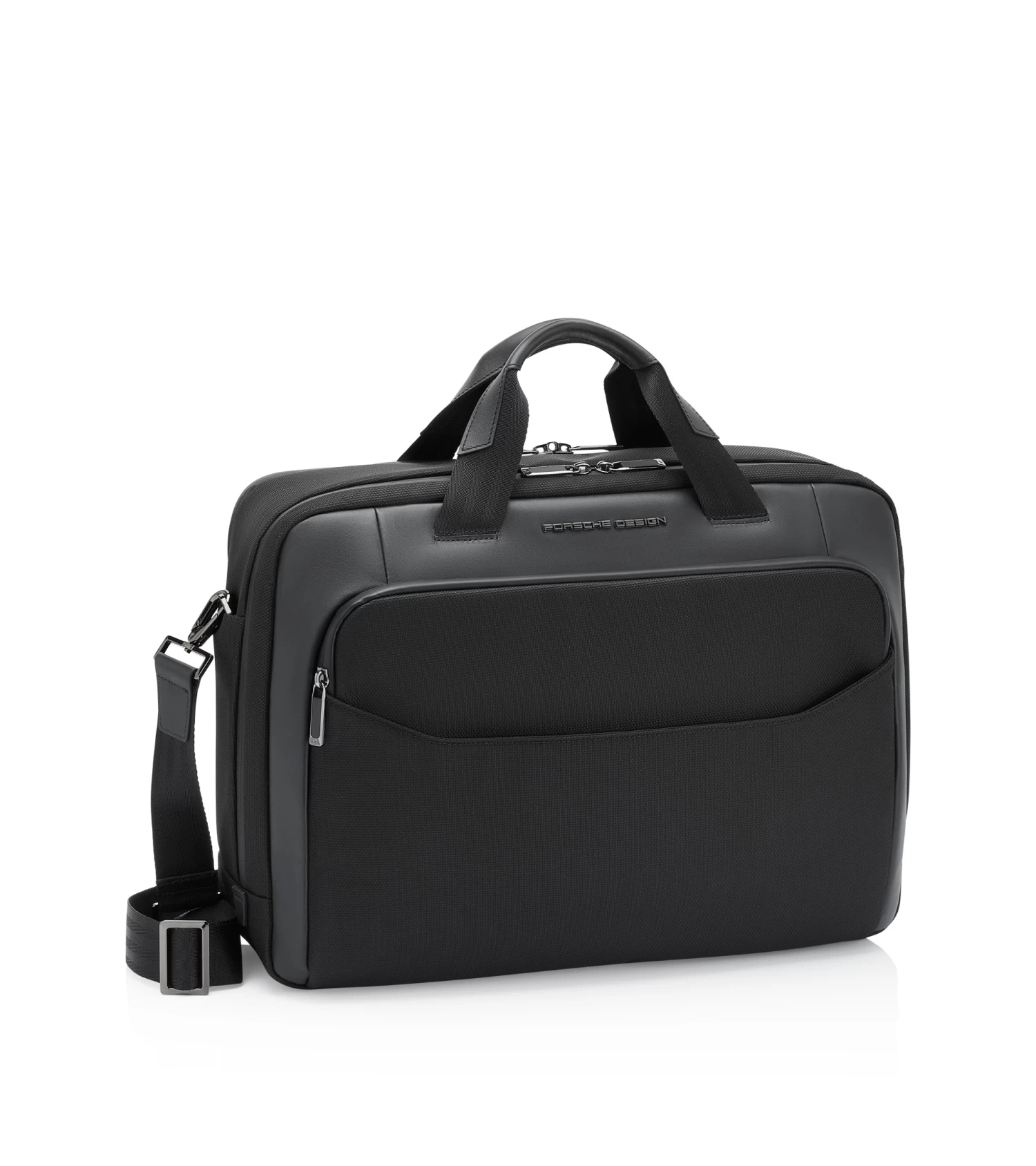 The Porsche Design Roadster Nylon Collection stands out from the crowded field of classic business bags with smart functionality and its exclusive, technical design. The combination of structured nylon and striking smooth leather makes the Porsche Design Roadster Nylon Briefcase M a real eye-catcher—the format of this briefcase is ideal for anyone who ever travels with an abundance of work materials. There is an integrated 17-inch laptop case in the two roomy main compartments, while the separate front pocket contains a business organizer including a carabiner.