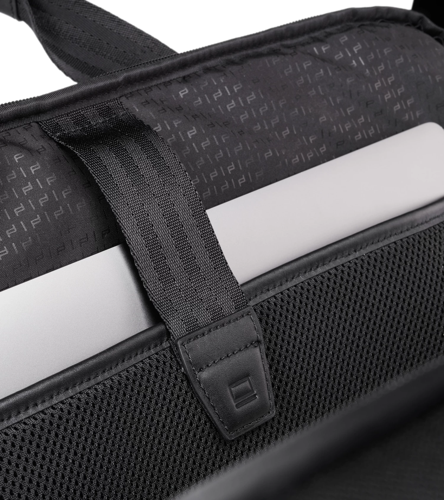 – A spacious briefcase in water-repellent nylon and smooth leather