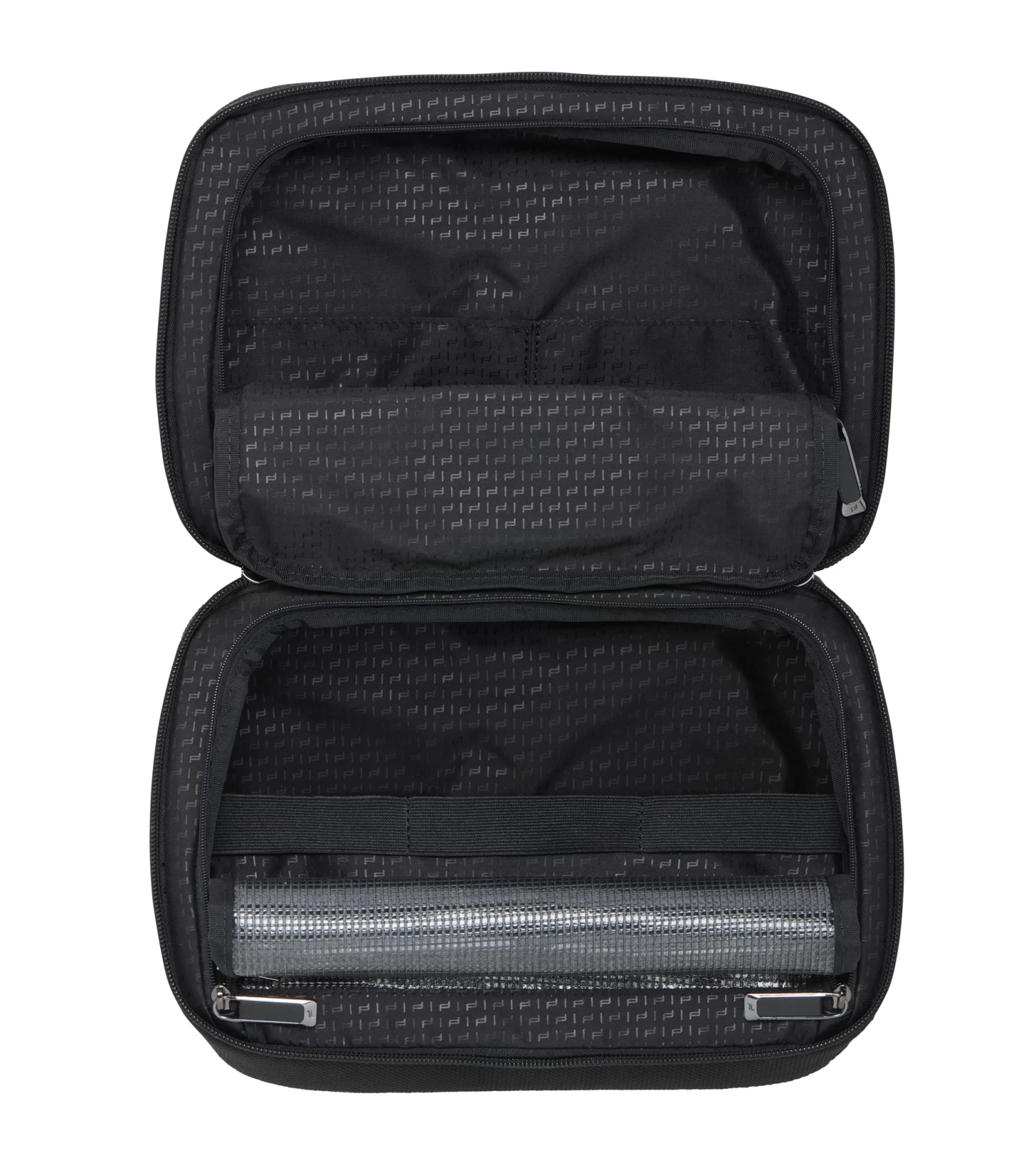 A zipper divides this washbag into two separate main compartments which can be completely opened. The larger format and the integrated organizer mean that your health and beauty products not only stay safe and dry on the move but are also swiftly to hand if required. The bag can be hung by the integrated hook on the back, thus saving space.