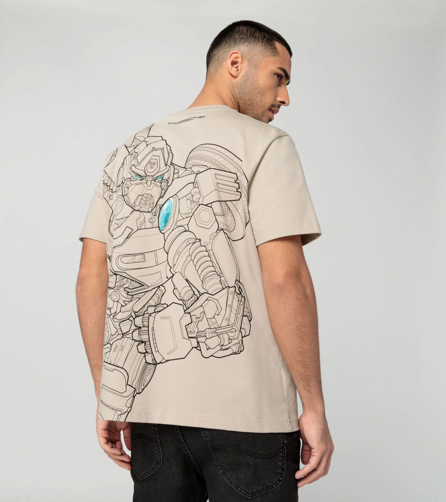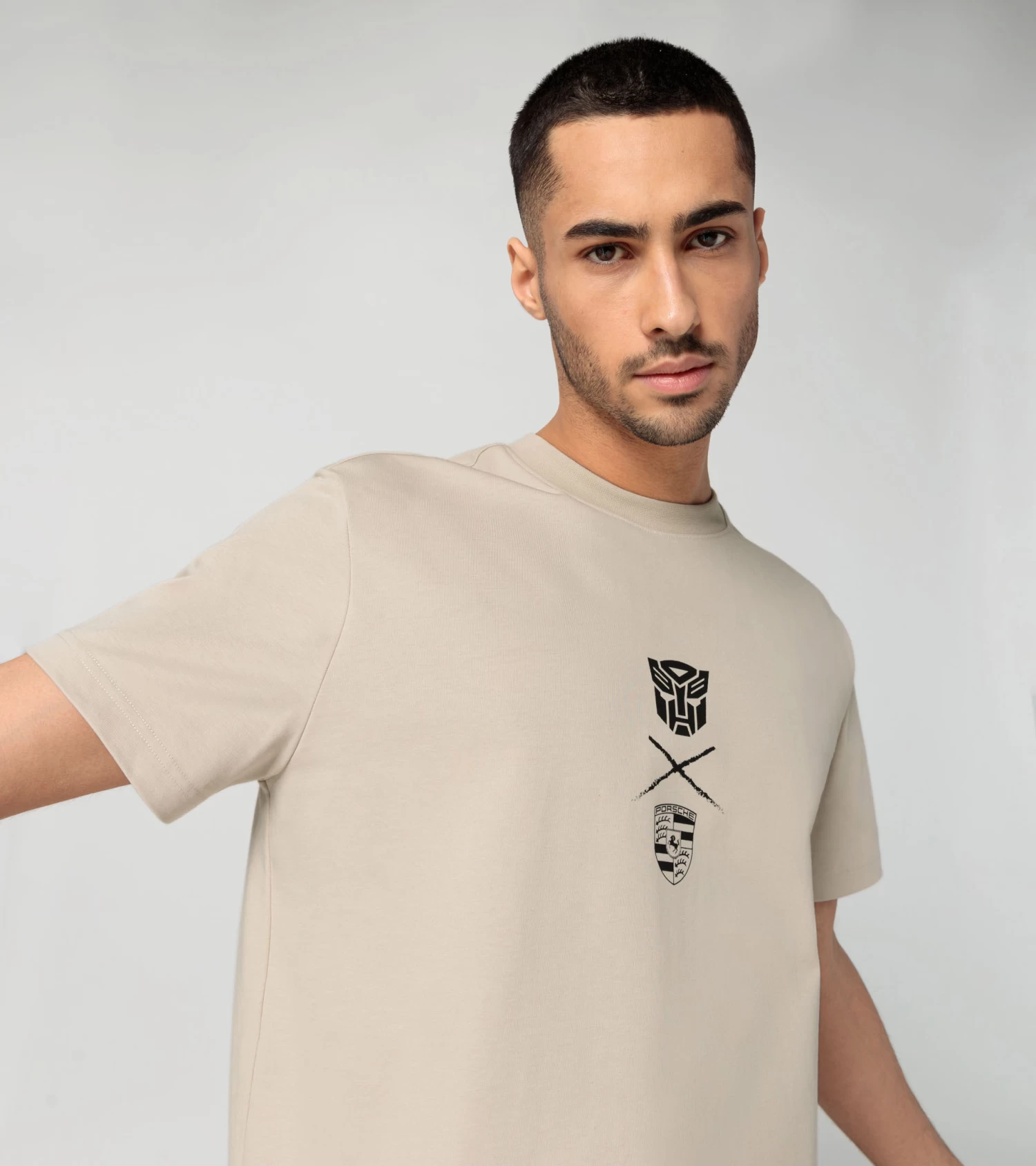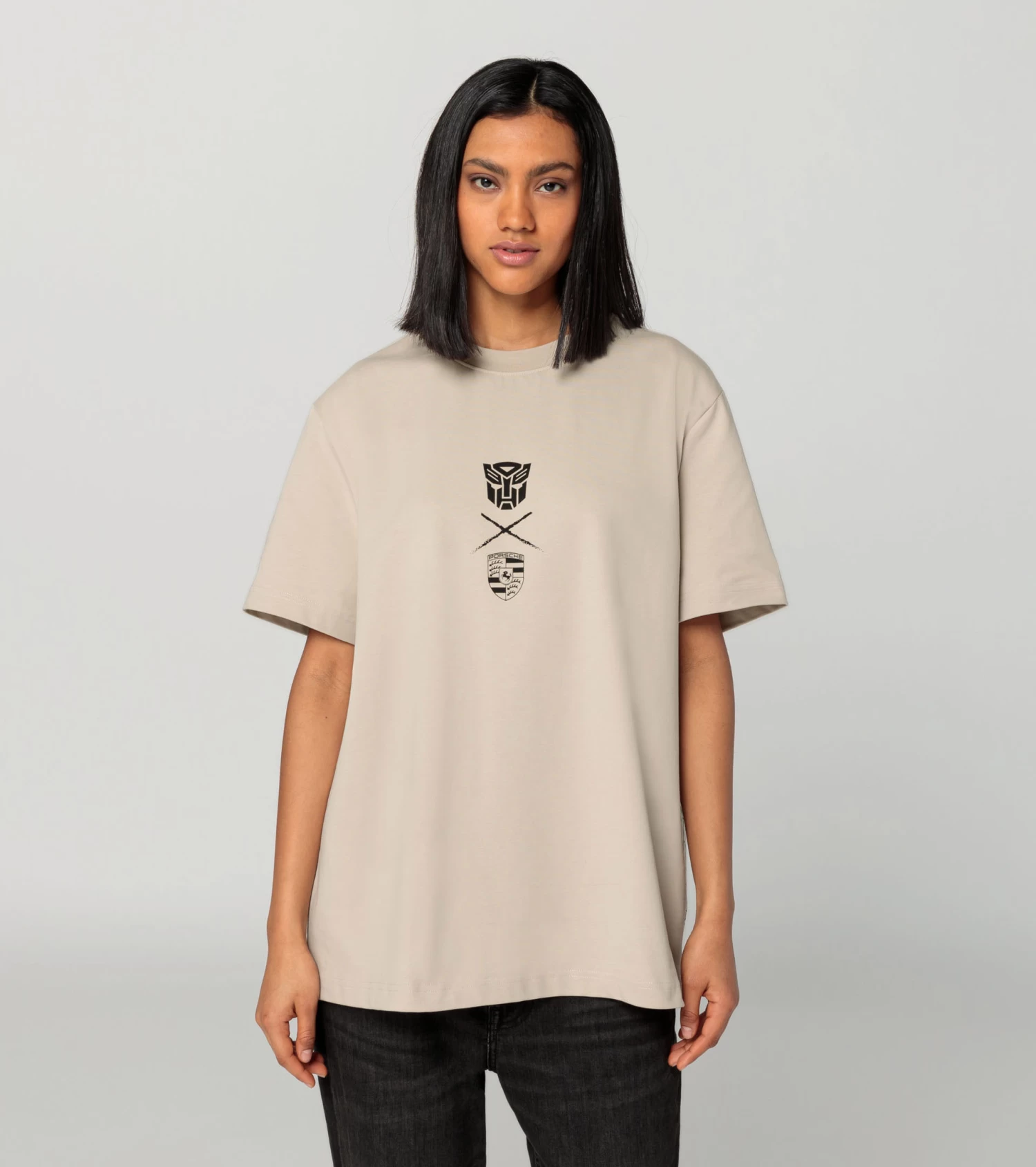 Porsche meets Transformers: two legends unite in this exclusive collection. A trendy, oversized T-shirt with dropped shoulders, a wide double-stitched collar and a large Transformers print on the back, with the ‘PORSCHE’ logo above the print. The front of the shirt is adorned with the collection logo, consisting of the Porsche crest and the Autobot icon. Comfort is guaranteed with this soft, heavy organic cotton. The T-shirt comes in an exclusive, high-quality box, which also makes it a perfect gift for Porsche and Transformers fans alike.