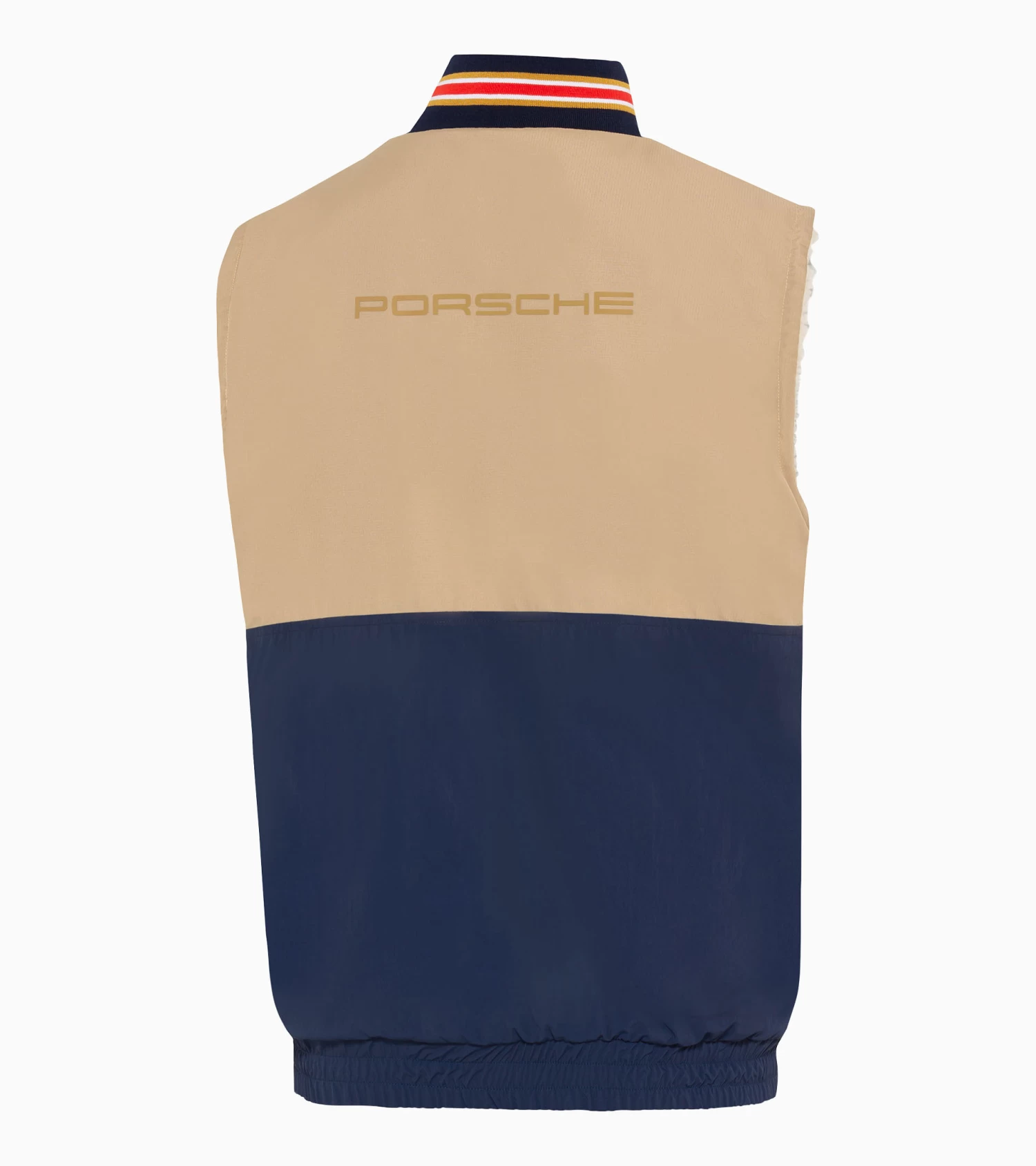 2 in 1: The reversible, regular-fit teddy vest from the Roughroads collection is as stylish as it is comfortable. One side features soft teddy fur and a practical turn-down collar, while the other features light, robust nylon fabric with modern colour blocking. Hip pockets and a zipped chest pocket offer plenty of storage space for your valuables. The Porsche Roughroads badge on the right chest, the Porsche logo on the back and the turn-down collar with stripe detail on one side create a visually striking look. Another highlight is the personalized zip puller on the main zip, with which the vest can be turned around in no time at all. In short: the perfect vest for all road trips – no matter which way you turn it.