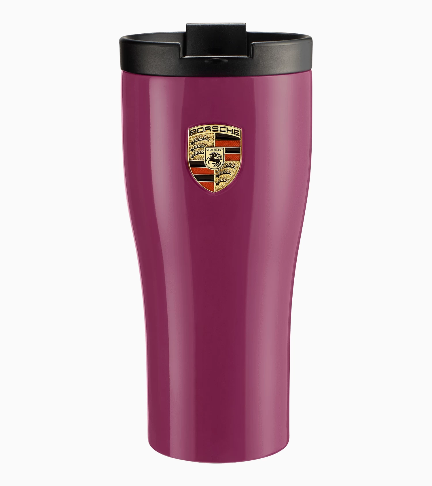 Performance on cold and warm days: the double-walled Porsche thermos cup made of stainless steel keeps hot beverages warm and cold beverages cool. The body of the mug is adorned with the Porsche crest, the lid has an embossed Porsche logo and is also 100% leak-proof. This makes the cup, with a capacity of approx. 460 ml, the ideal companion for on the go. Also ideal as a gift for any Porsche fan thanks to the high-quality packaging.