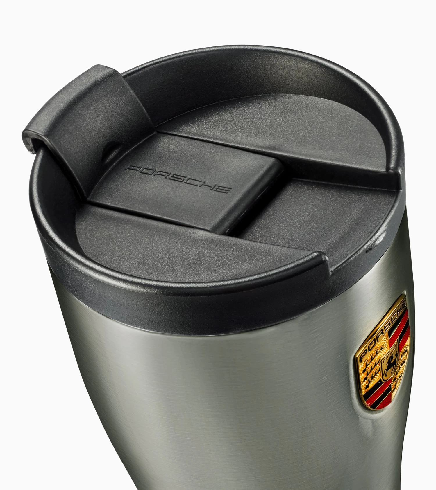 High performance on the go: the double-walled, leak-proof Porsche thermal travel mug with Transformers design keeps hot beverages warm and cold beverages cool. The body of the cup is decorated with the Porsche crest, and the lid with embossed Porsche lettering. The high-quality packaging also makes it an ideal gift for Porsche and Transformers fans alike. With a capacity of approx. 460 ml, the cup is the ideal companion for on the road.