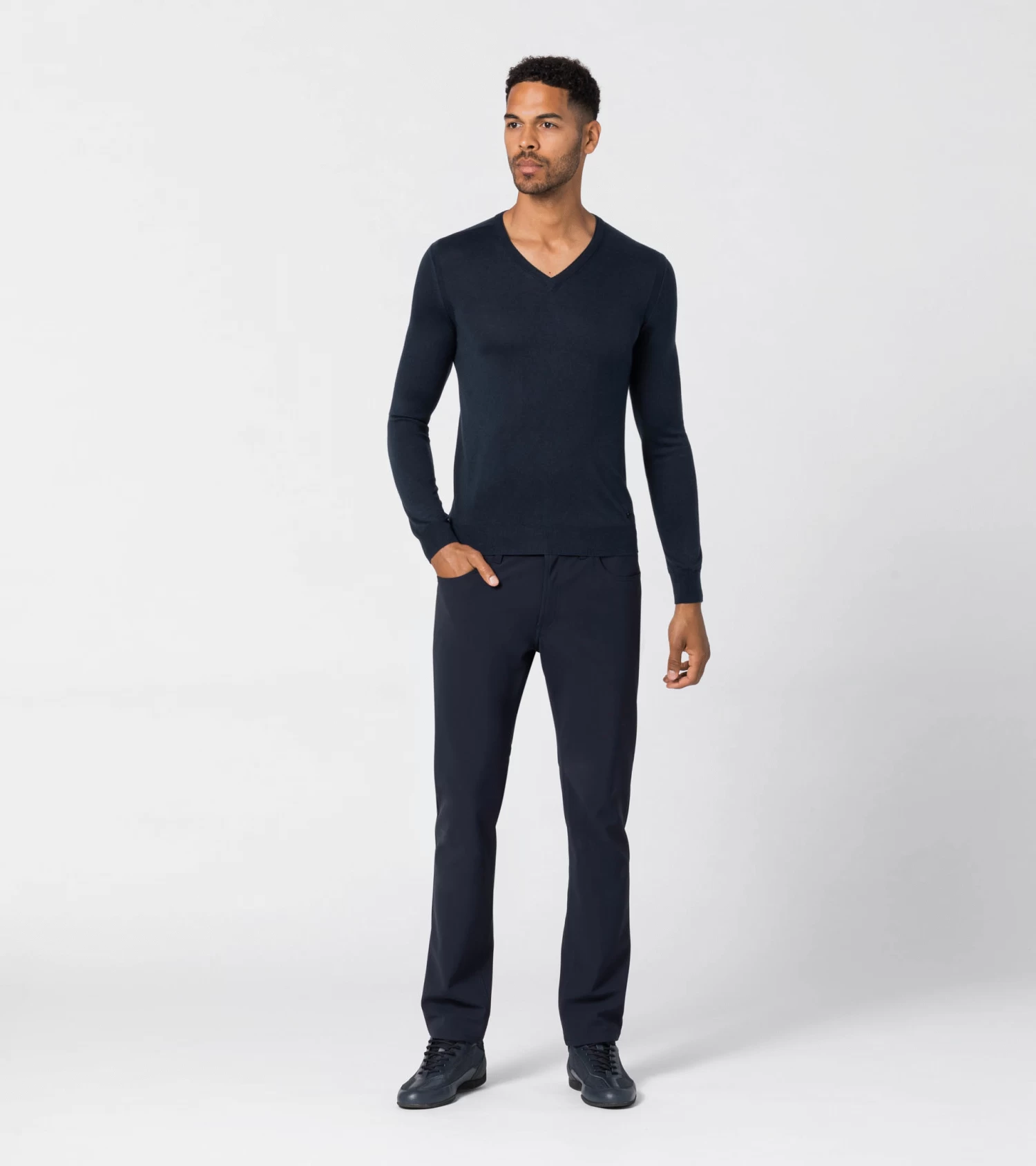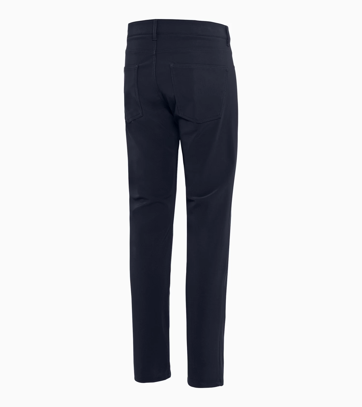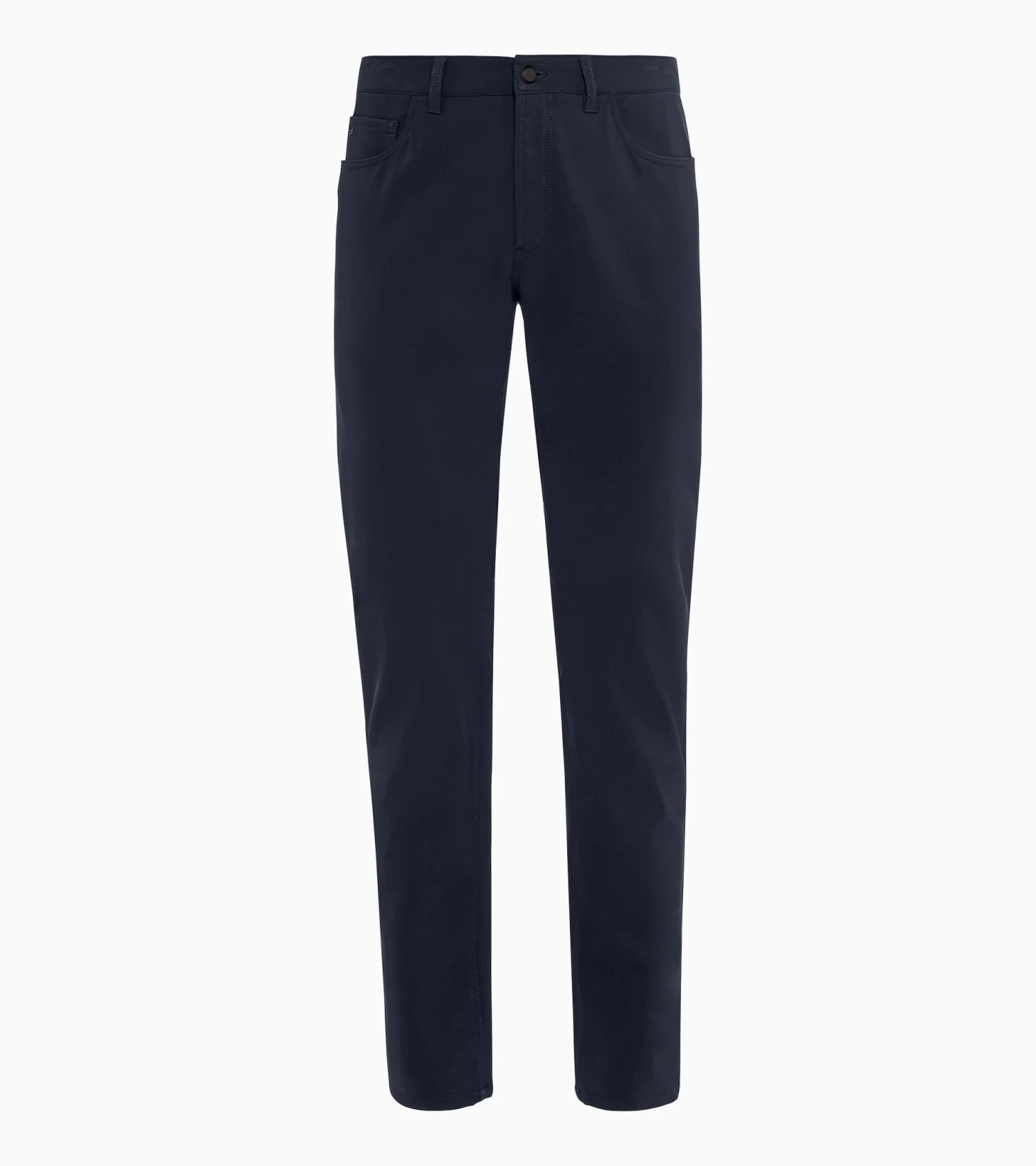The perfect trousers for business travel: Porsche Design Travel Pants combine timeless design with breathable, high-performance materials: two-way stretch fabric with 15% elastane ensures maximum comfort and freedom of movement on long journeys or in long meetings – and a wrinkle-free fit throughout the day. The new, regular fit and mid-rise waist with a hook closure give these pants a modern, relaxed feel. Even the side pockets are designed for comfort: in high-quality cotton for a luxurious, soft-touch finish.