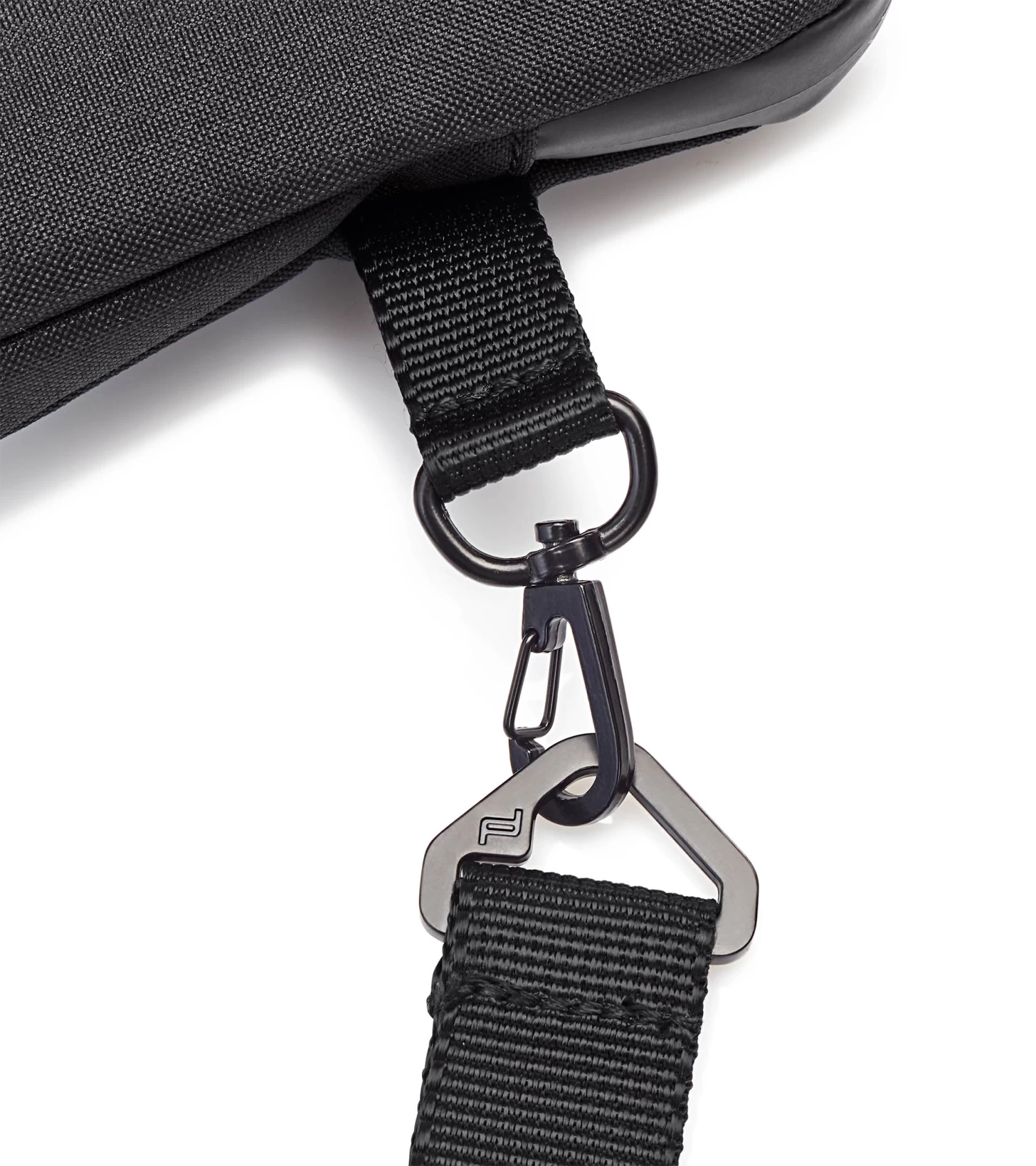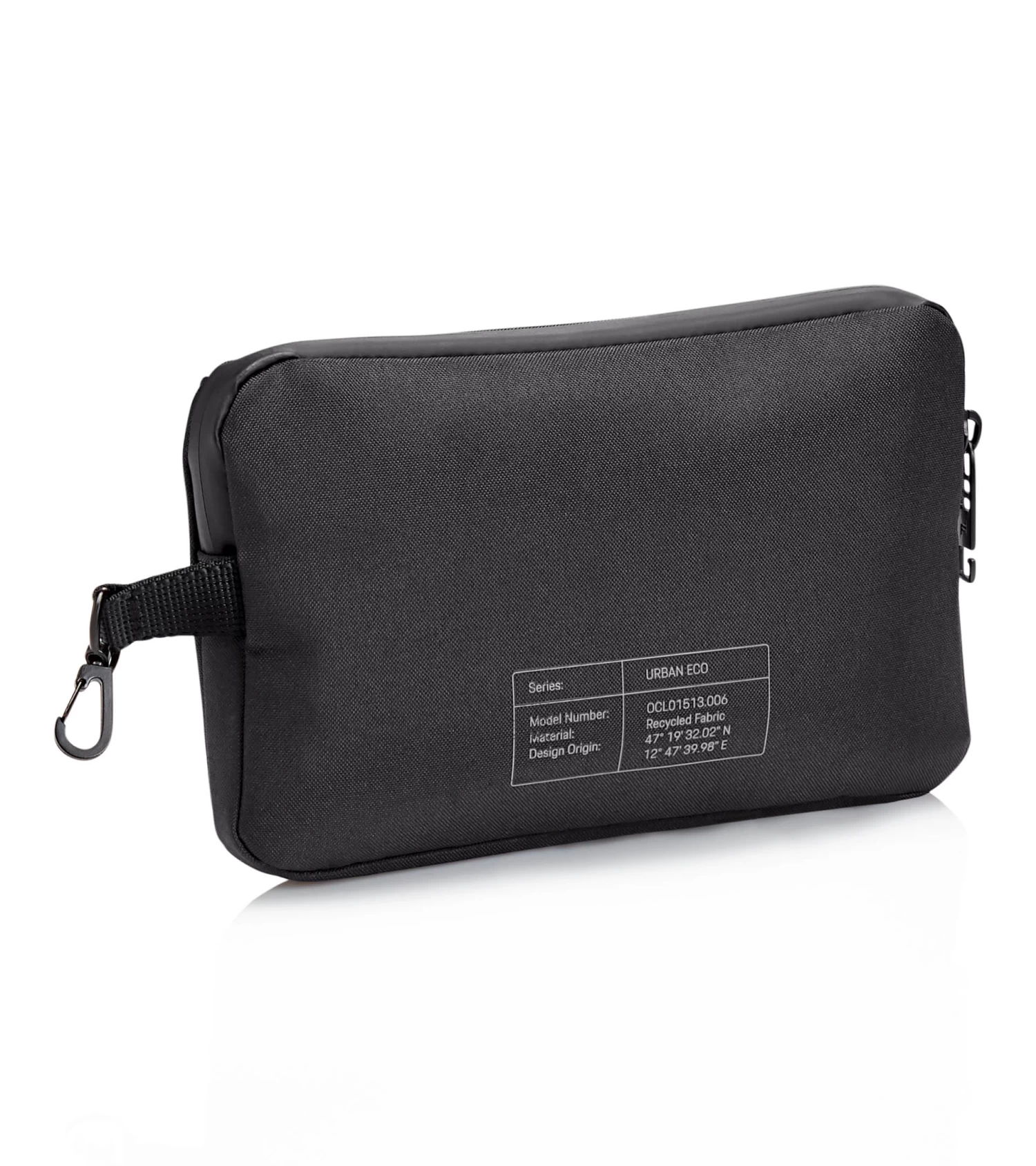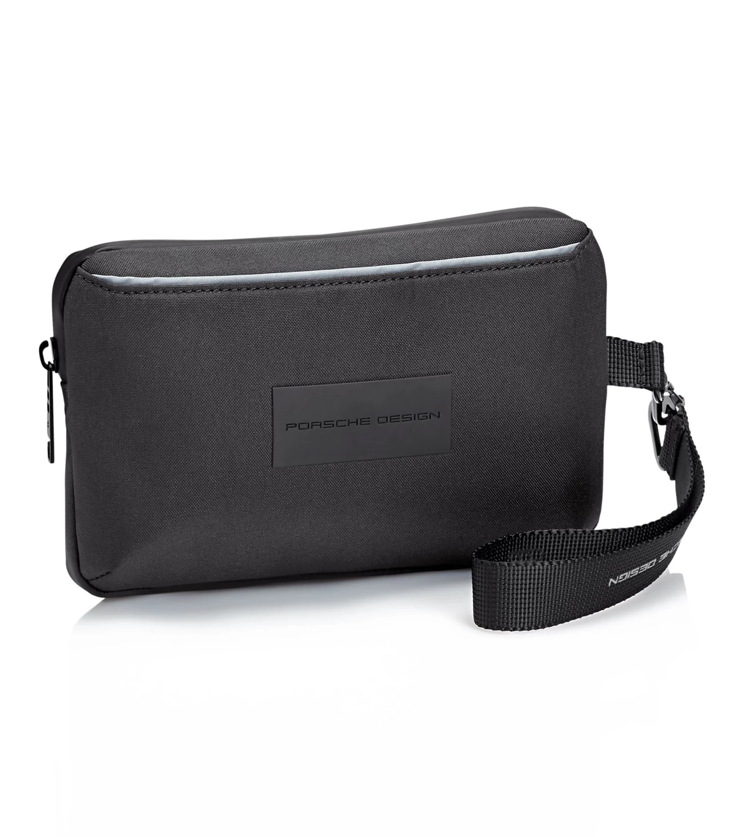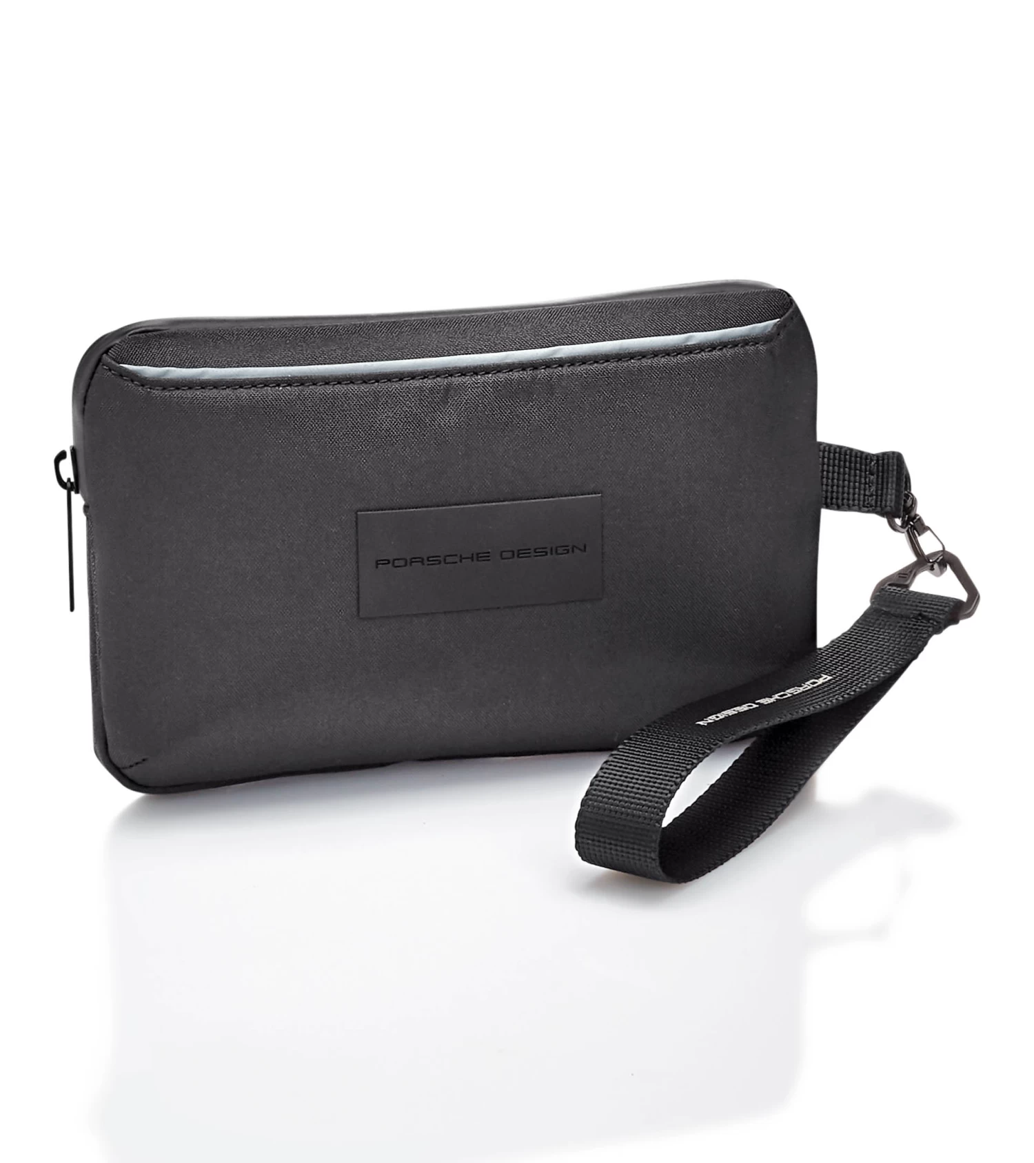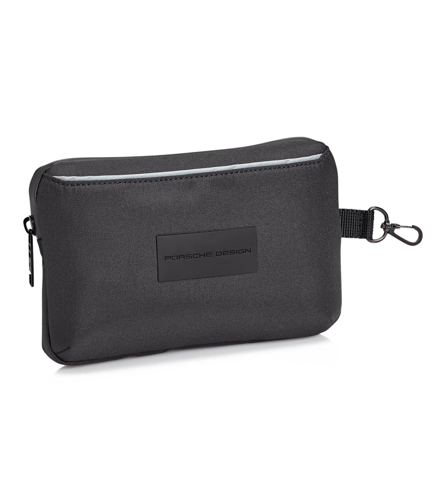 The Porsche Design Urban Eco series doesn’t stay in the drawer—it’s perfect for modern everyday life: stylish and sustainable, functional and flexible. Like the Porsche Design Urban Eco pouch. The small accessory bag can be carried on its own by the removable handle loop—but as a modular extra, it also perfectly complements the series’ backpacks which have matching V-attachment rings on the shoulder straps. Either way, the little bag has big style: the mix of water-resistant polyester and coated fabric are exciting, while laminated zippers, black metal fittings, and a rubberized logo patch create a technical, clean look. In the inner compartment of the pouch, there is room for mobile devices and keys or even a charging cable—whatever you need. Sometimes less is more.