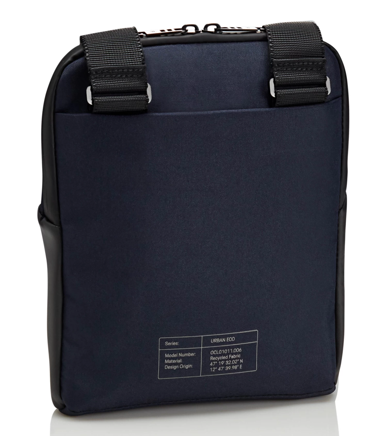 The Porsche Design Urban Eco series doesn’t stay in the drawer – it’s perfect for modern everyday life: stylish and sustainable, functional and flexible. Like the Porsche Design Urban Eco Shoulder Bag S, the small shoulder bag proves that functionality and great design are not a question of size. Even at first glance, the shoulder bag captivates with its exciting material combination of water-repellent polyester and coated fabric and the clean design, emphasized by laminated zippers and black metal fittings. Not immediately visible, but unmistakably exclusive: Details like the PD icon lining with hexagon pattern and the Porsche model badge-inspired back print with the Zell am See map coordinates, the home of Studio F.A. Porsche. Well-thought out organization underpins a technical, cool look. The 2-way zippered main compartment features a padded tablet pocket and organizer, two slip pockets under the front reflective piping, and an additional zippered pocket above. The adjustable shoulder strap attached to the back not only frames another slip-in compartment – it also allows the bag to fit the body particularly well. Smart, compact, stylish: Your leisure companion.