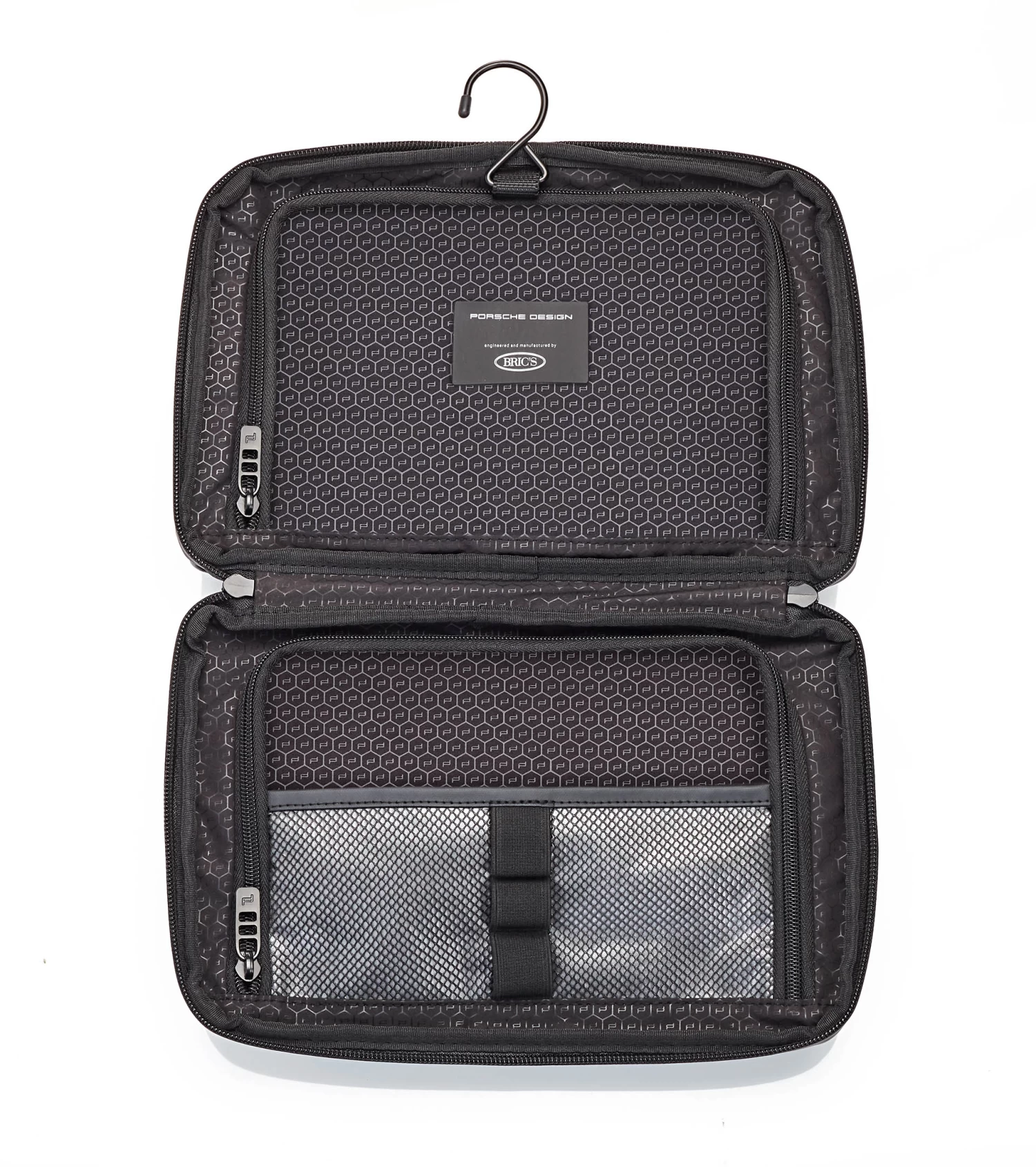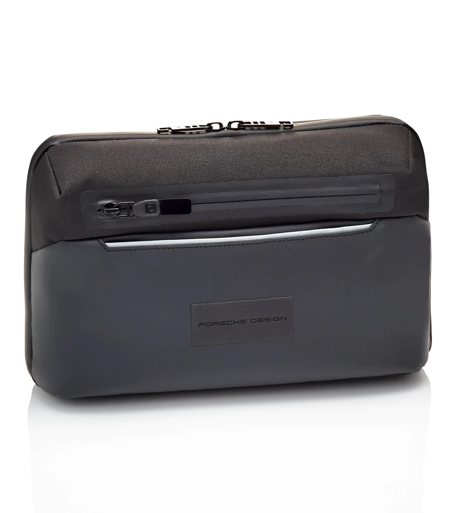The Porsche Design Urban Eco series doesn’t stay in the drawer – it’s perfect for modern everyday life: stylish and sustainable, functional and flexible. Like the Porsche Design Urban Eco Washbag L, the modern wash bag is attractive at first sight with its technical-clean design: The contrast of water-repellent polyester and coated abrasion-resistant fabric looks exciting and sporty, while laminated zippers, a reflective piped welt pocket and black metal hardware maximize the cool look. The equipment also proves style and functionality: Via the 2-way zipper, the bag can be opened completely 180 °, the integrated hook allows a space-saving and hanging in the bathroom. Two main zippered compartments with multiple functional storage options, plus an additional zippered pocket and slip pocket on the front and another slip pocket on the back provide the best way to organize your grooming products. Details like the PD icon lining with hexagon pattern and the Porsche model badge-inspired back print with the Zell am See map coordinates, the home of Studio F.A. Porsche, provide the unmistakably exclusive finish.