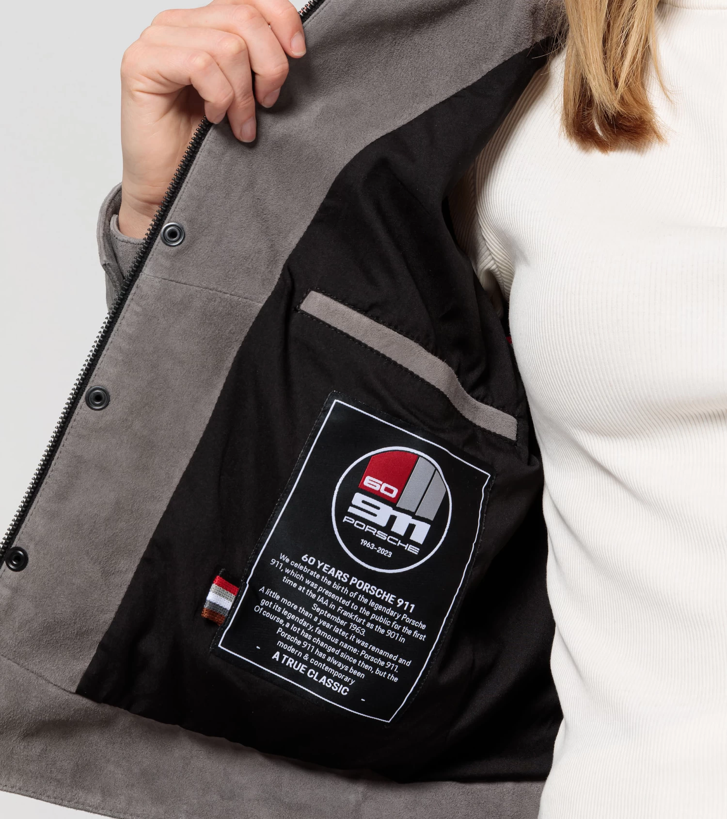Times change, but the Porsche 911 has remained timeless and modern since 1963 – a true classic. Designed to mark the 60th anniversary of the legendary sports car, the 60Y Porsche 911 collection combines sporty elegance, simple details and high-quality materials in a modern, timeless look – echoing the classic car. Limited to 911 units, the leather jacket reflects the timeless coolness of the 911. It catches the eye with its slightly shorter fit and the knitted insert on the back hem, which gives it a stylish, light blouson shape. The adjustable sleeve hem with hidden press studs also ensures a perfect fit and maximum wearing comfort. High-quality details such as the side pockets with concealed press studs, the zip fastener at the front concealed by a button placket and the high-quality knitted inserts – inspired by the seat cover of the anniversary vehicle – on the turn-down collar emphasise its exclusive character. Other fine design elements include the crest badge on the right sleeve and the embroidered Porsche lettering on the back, below the collar. The Black inner lining features a large 60Y 911 print and a story label.
